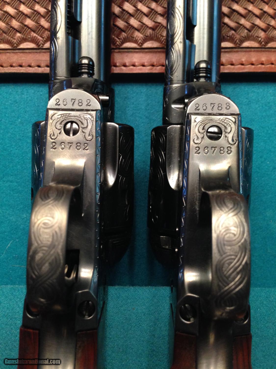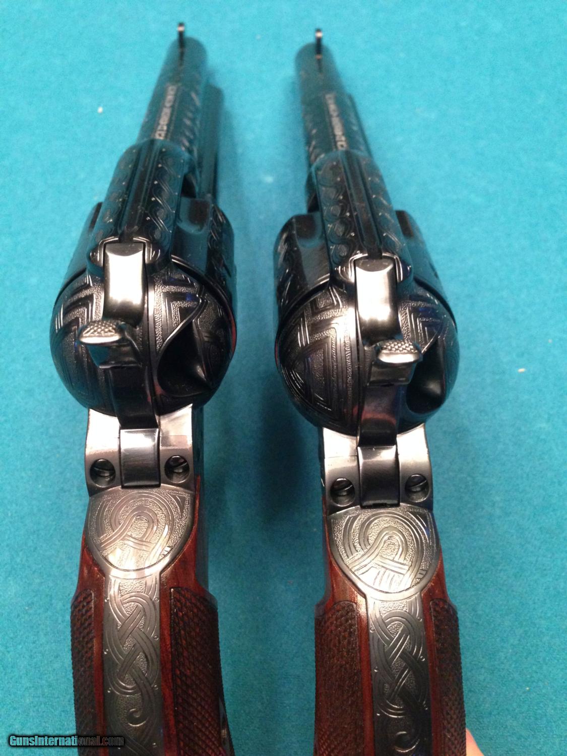 RARE - USFA Match Pair Factory Engraved - Armory Blue - Beautiful Checkered Rosewood