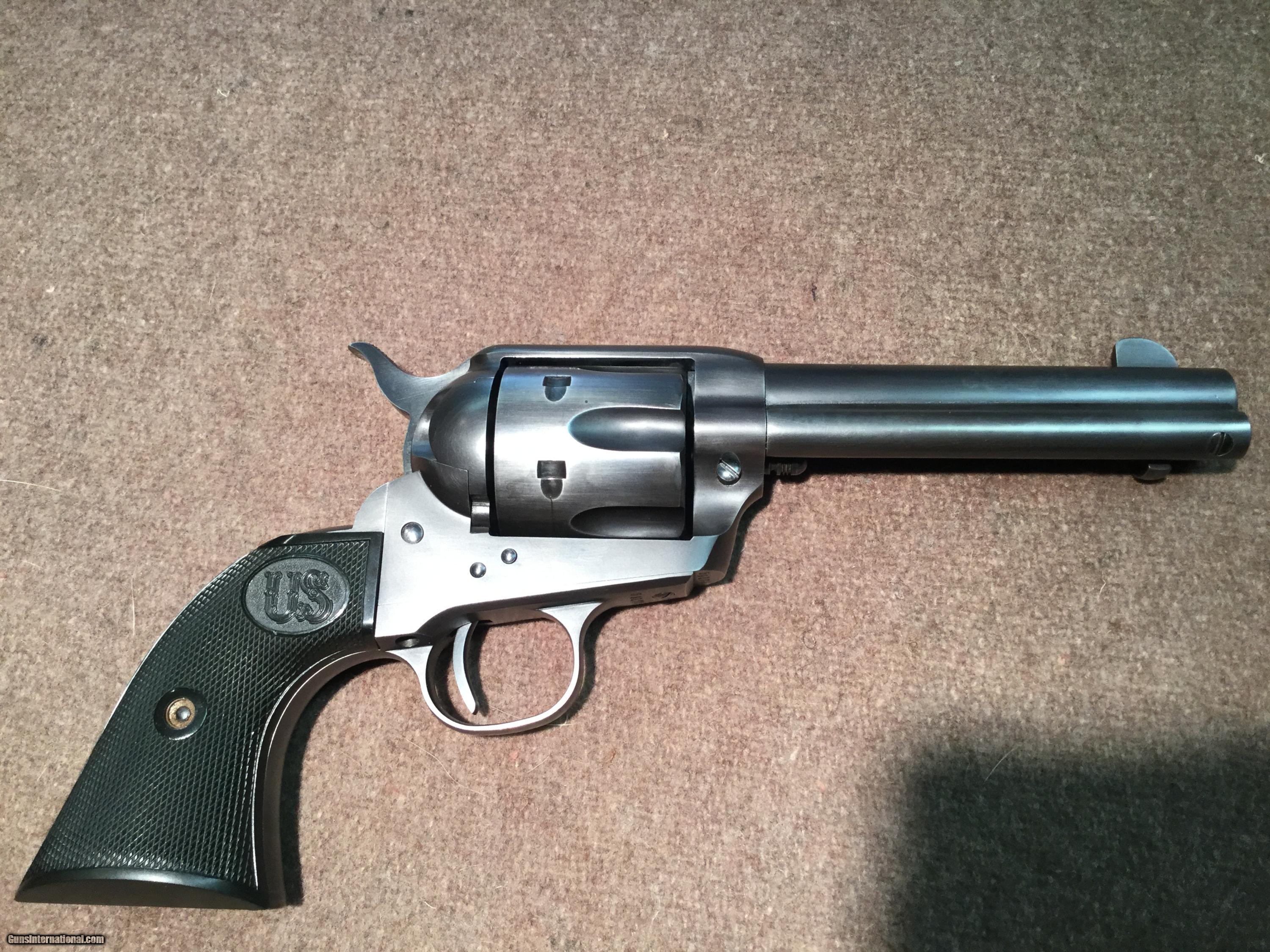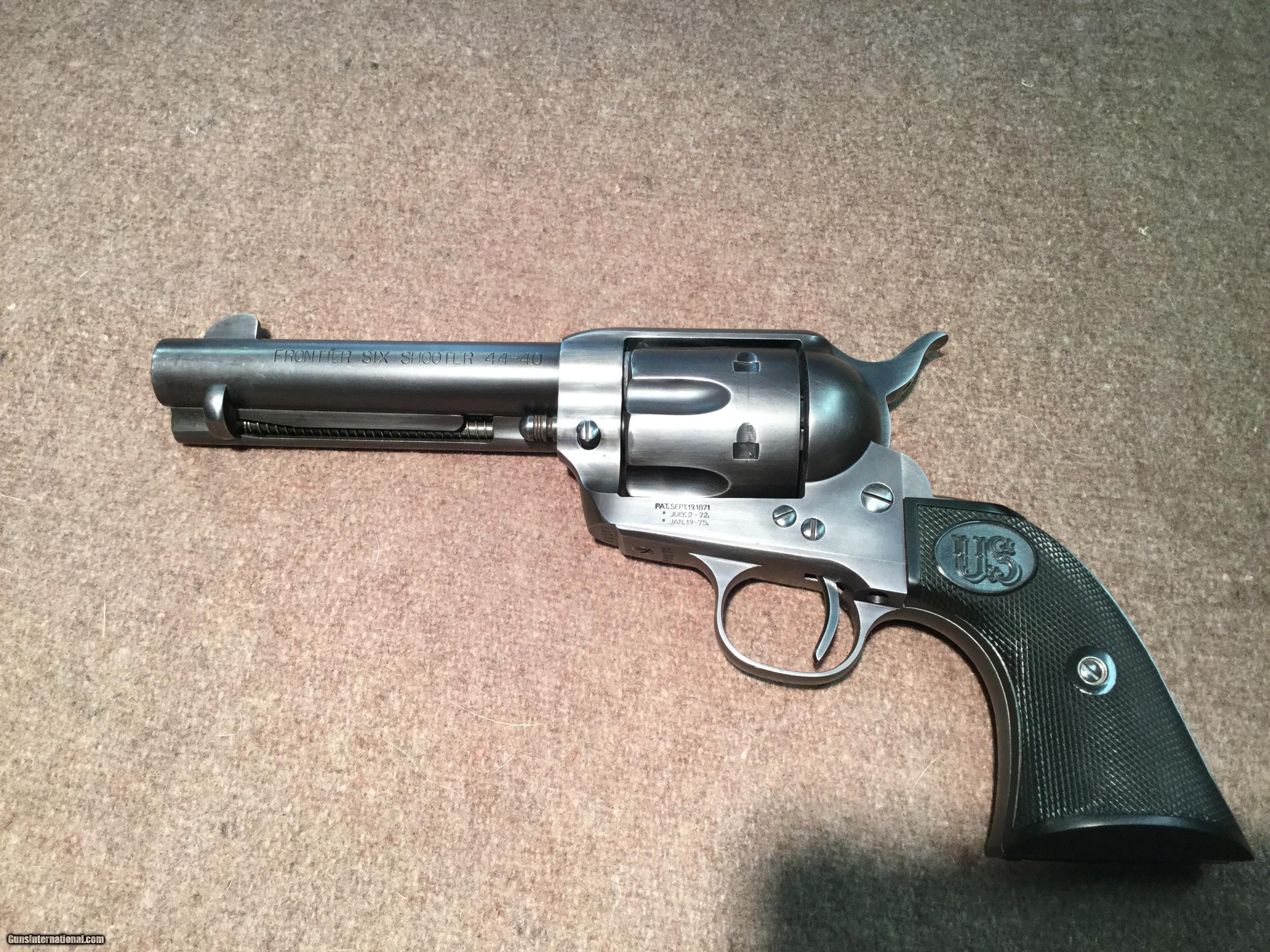 Description: U.S. Fire Arms MFG. Co . This SAA made at the Colt factory with colt fire arms Machinery . Theses SAA's are made very nice , very tight , feels and looks just like a real first gen colt. this SA is 44-40 cal. Frontier Six Shooter in the 4 3/4 barrel lenght, Comes with box and cloth sleeve and paper work , bore is almost mint. Questions call 406-407-0698 SOLD Manufacturer: U.S. Fire Arms MFG. Hartford Conn. Model: Gunslinger Serial Number: 59xxx Caliber Info: 44-40 Barrels: 4 3/4 |