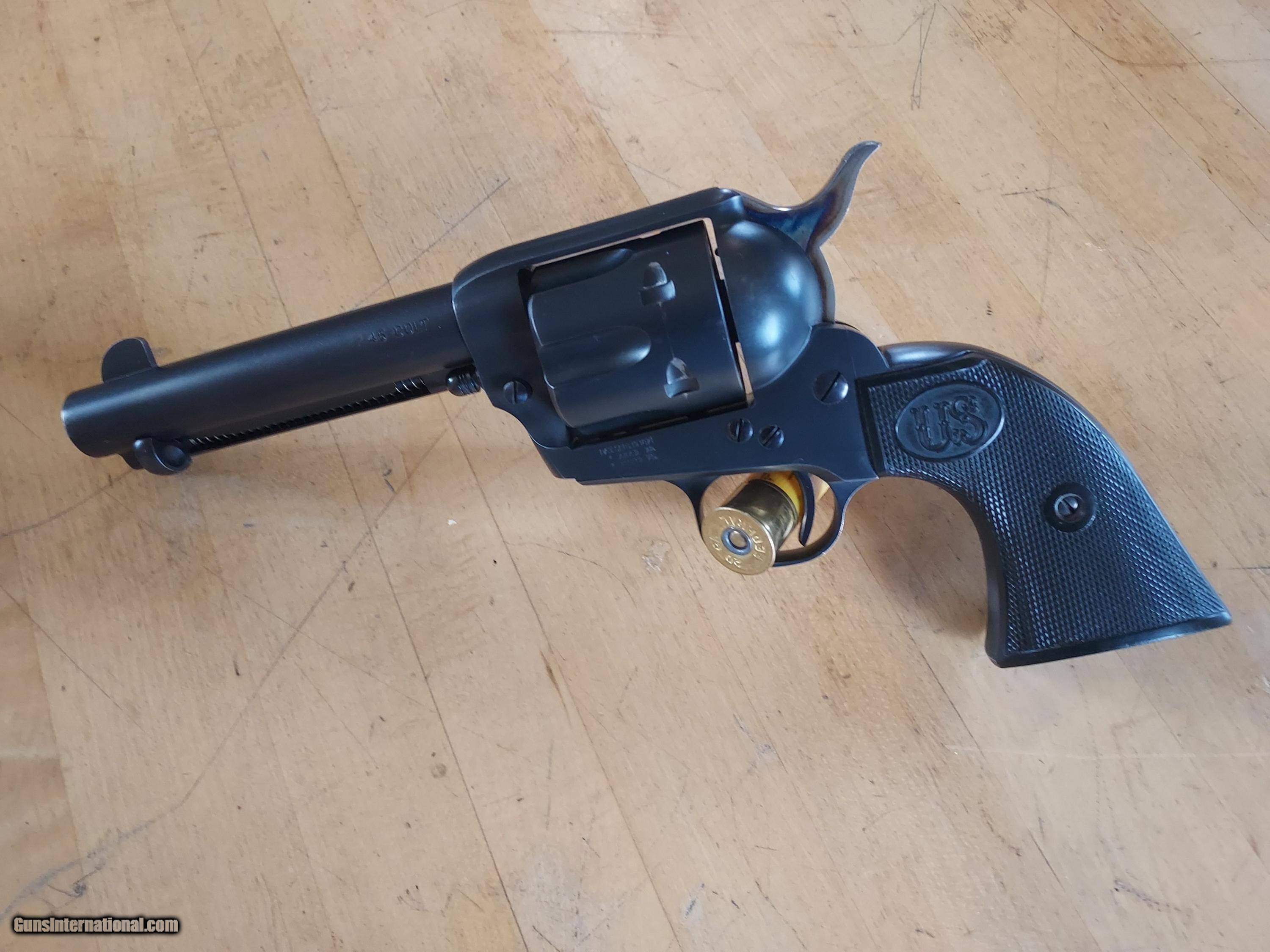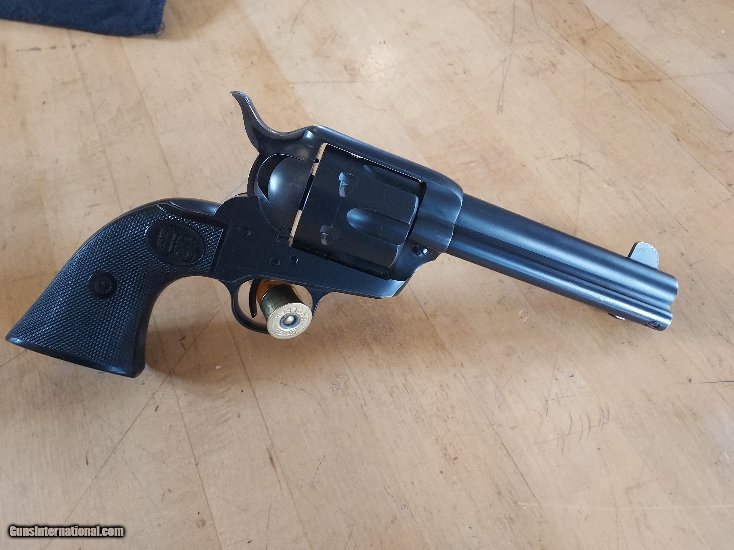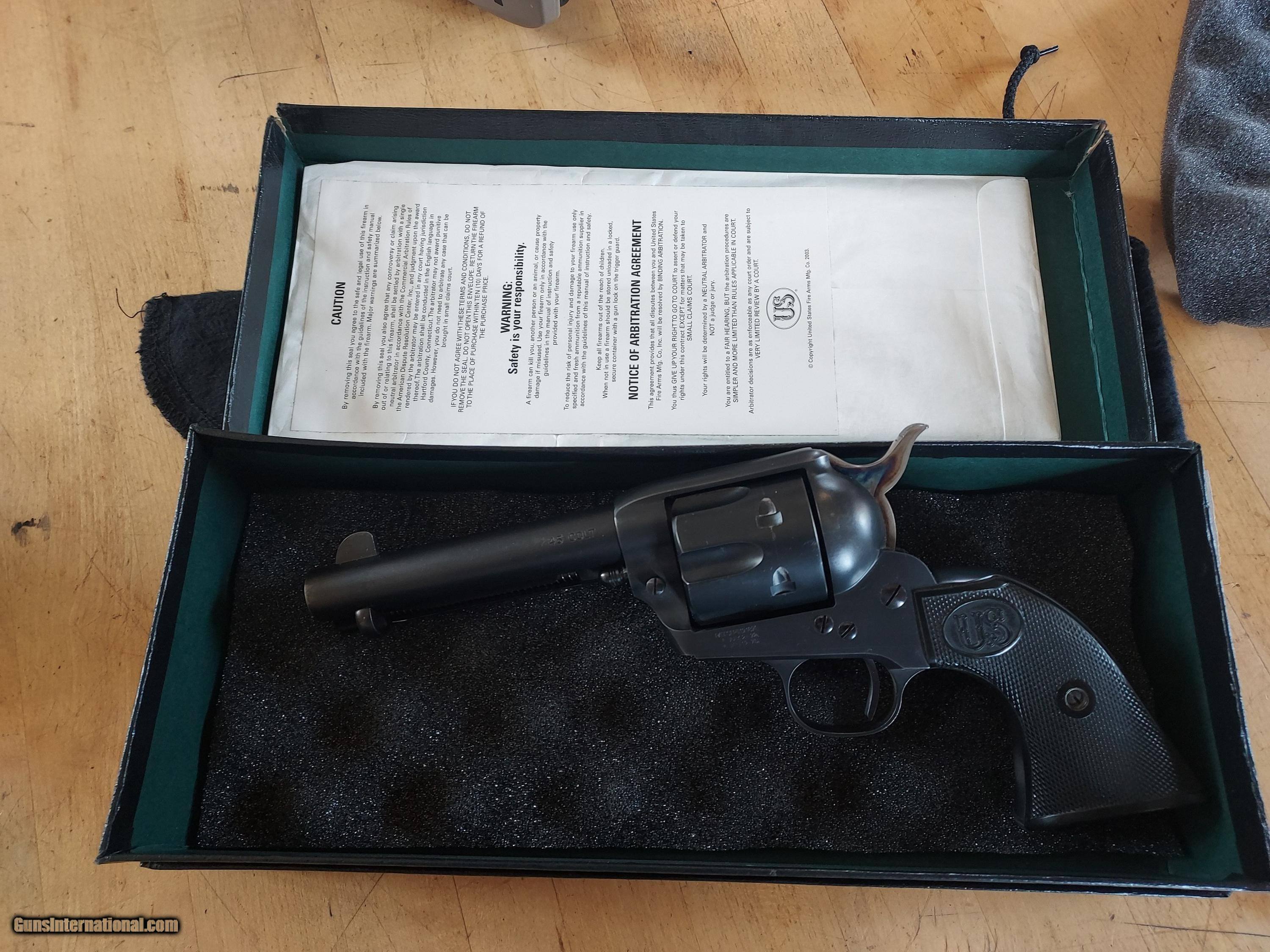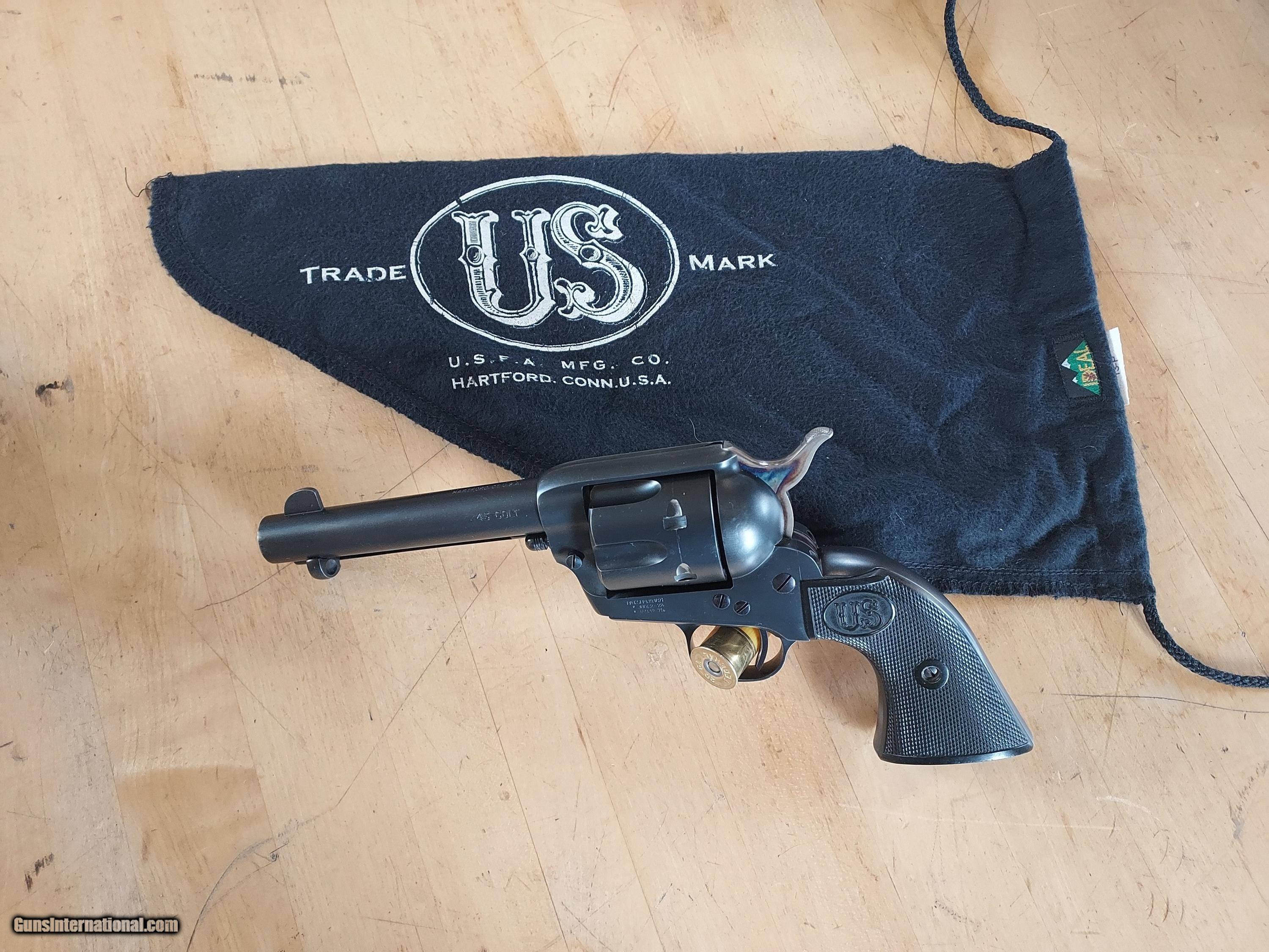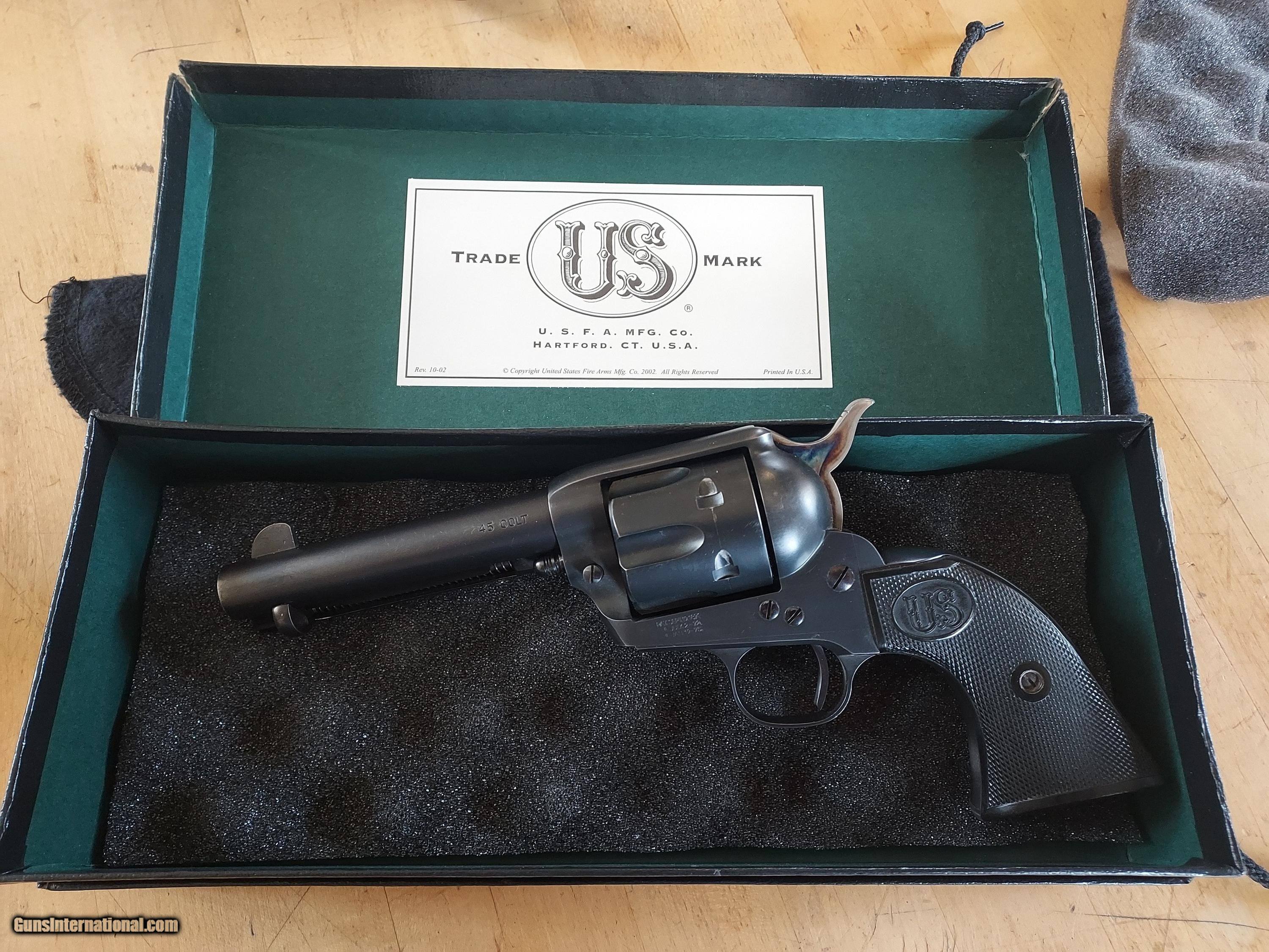 Description: USFA Rodeo 45 Colt. 4 3/4" barrel. Original box and paperwork. Original grips. colorcase hammer. The box has some issues see pictures. It also has the original cotton sack the gun comes in. This gun does have some normal bluing wear and light handling marks but overall is in very good condition. $1750.00 OBO Buyer pays all shipping cost. SOLD Manufacturer: US Firearms Model: Rodeo Serial Number: E230 Barrel Length: 4 3/4 |