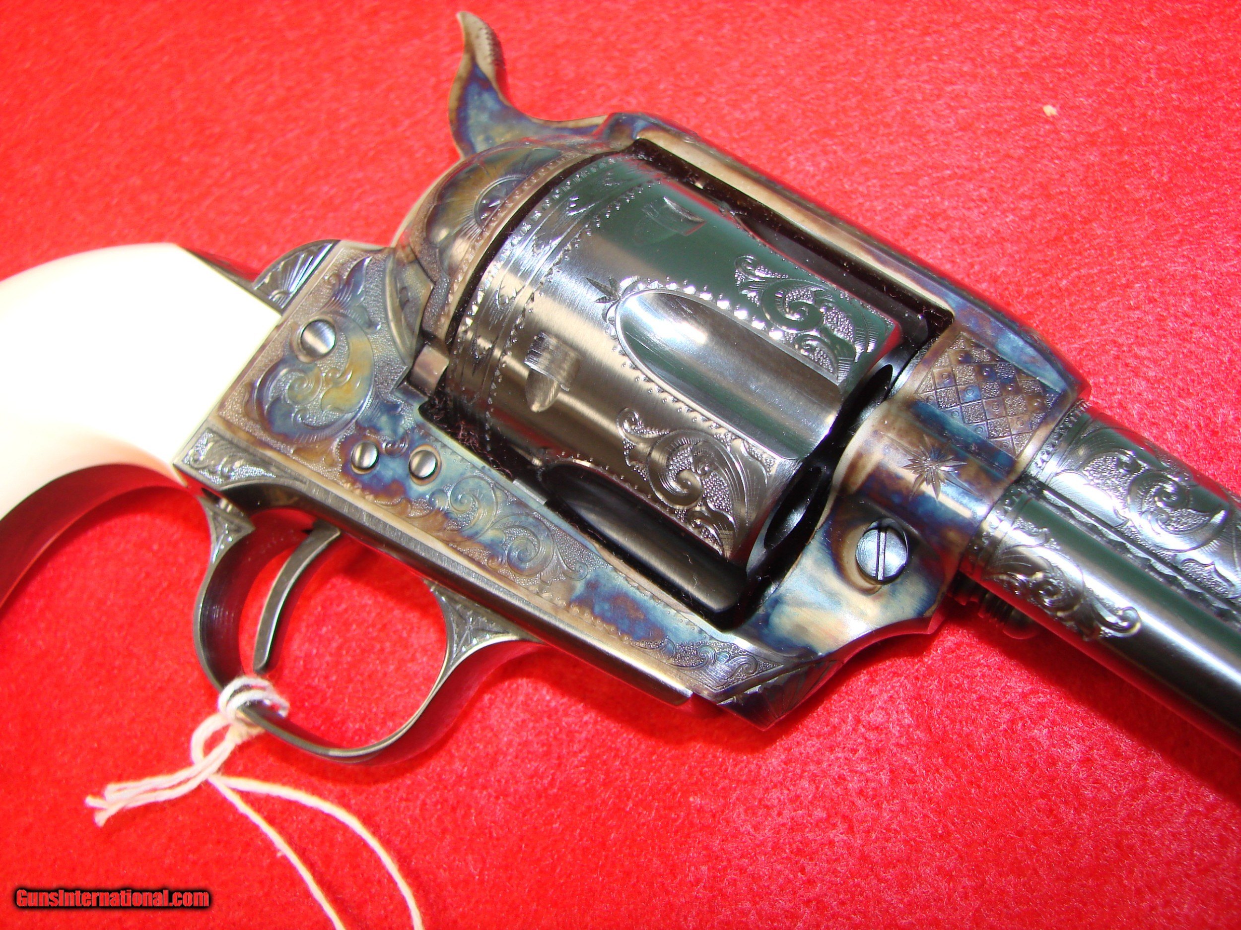 Description: Two USFA Single Action Revolvers in 38-40, beautifully engraved with 7.5" barrels, One piece Ivory grips, blue/case color finishes and consecutively numbered. Guns Are in excellent condition, and come with original rubber grips and boxes {boxes are not labeled} Engraver unknown. "One Nation under God, Indivisable" and "With Liberty and Justice for All" are engraved on the backstraps *Legendary Guns in Phoenix AZ 602-242-1195 Hours of operation Tuesday-Friday 10-6 Sat 10-5 Closed Sundays & Mondays *No Add’l Credit Card fees, You only pay for the cost of the item & $35 for shipping{AK&HI Extra} Arizona Residents Must Pay Sales Tax. *We accept all Major credit cards, Postal Money order or Certified Bank Check{Check & Money order payments ship after payment has cleared} *We offer a 60 day layaway on a purchases of $500 or more. Items require 1/3 of the total price as down payment which is NON-REFUNDABLE and you have 60 days to pay off the balance. *Please call the shop for any questions and to confirm availability before buying. We are happy to answer all questions. *All items online are also for sale at our Phoenix location *We offer a 3 day inspection period with a full refund if item was misrepresented. We accept returns for any reason within the 3 day inspection period with NO REFUNDS ON SHIPPING CHARGES and a 15% restocking fee. *We Only accept/consider trades that can be brought to our Store in Phoenix. *If it’s legal in your area we will sell it, that includes California, so due to new California regulations we are required to let you know that the items we sell will expose you to harmful materials that the Great Nation of CA has deemed harmful. So a firearm will expose you to such chemicals as lead which may cause birth defects, cancer, and other horrible health problems. For more information, go to P65Warnings.ca.gov SOLD Manufacturer: USFA Model: SAA Caliber Info: 38-40 |
