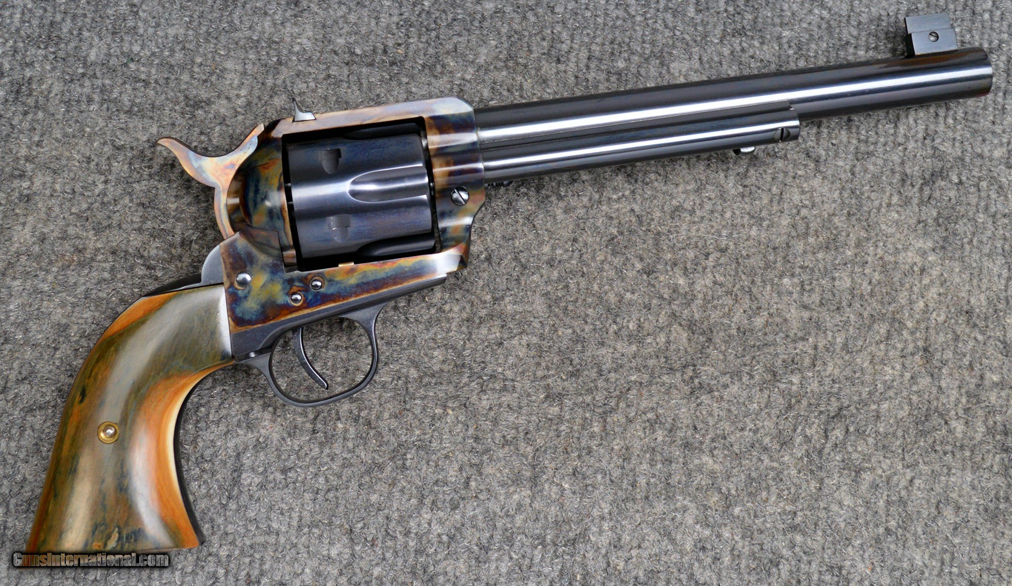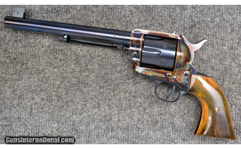 Description: For your consideration, a Single Action Army clone by United States Firearms chambered in .32-20 Winchester Centerfire. With its 4-click lockwork and hammer-mounted firing pin, this piece is a faithful recreation of the legendary Colt Single Action Army off of which it is based. The factory grips have been replaced with a set of mastodon ivory. .32-20 WCF SOLD Chambers: 6 Metal Condition: Excellent Wood Condition: Excellent Bore Condition: Excellent Barrels: 7.5 Triggers: Smooth Face Weight: 2.75 lbs Sights: Iron Sights Item Location: Hamburg, PA |