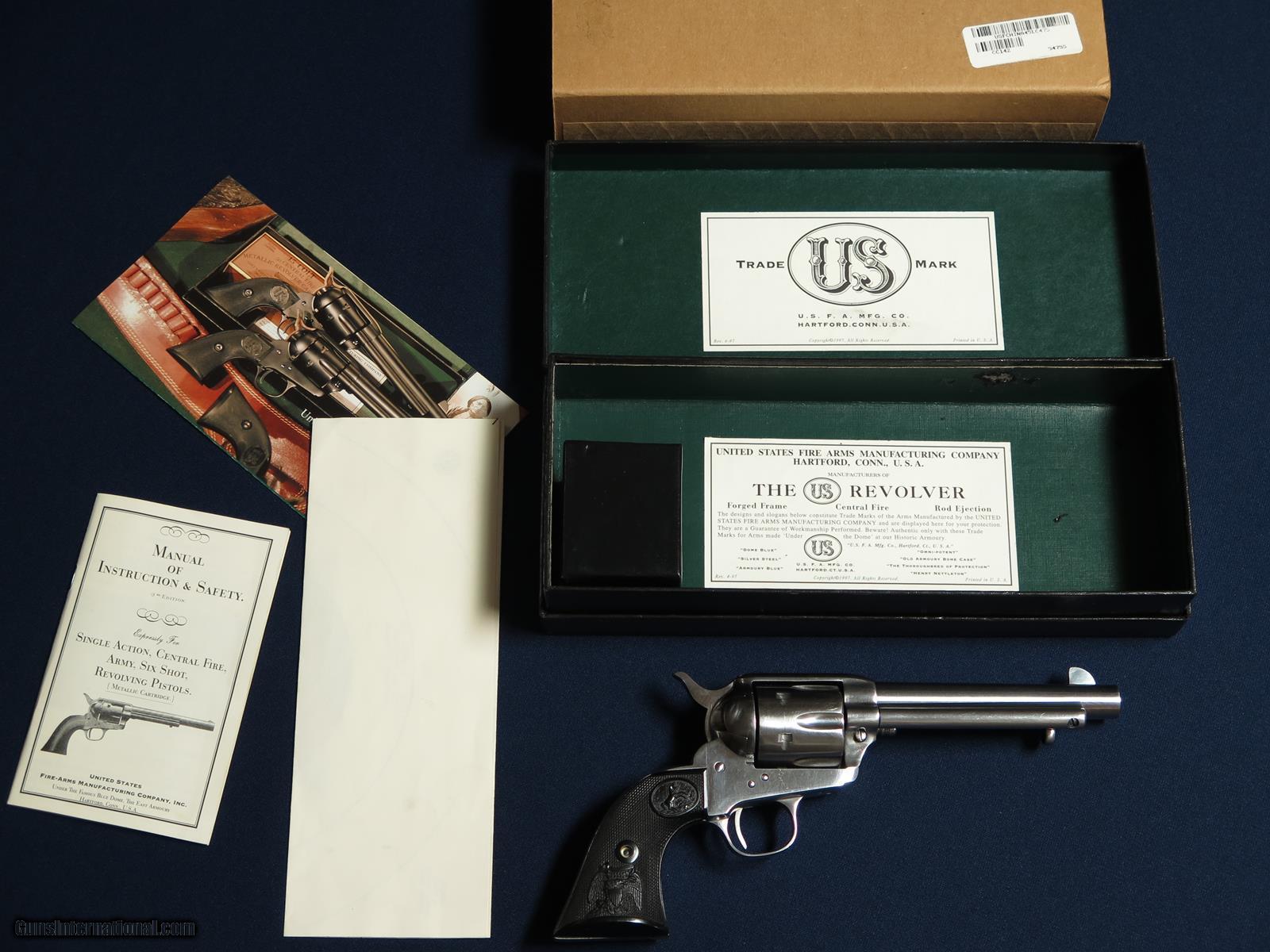 Description: USFA (US Firearms Mfg Co) SAA 45 China camp model. 5 1/2 barrel. 98% with a box, sleeve and papers. SOLD |