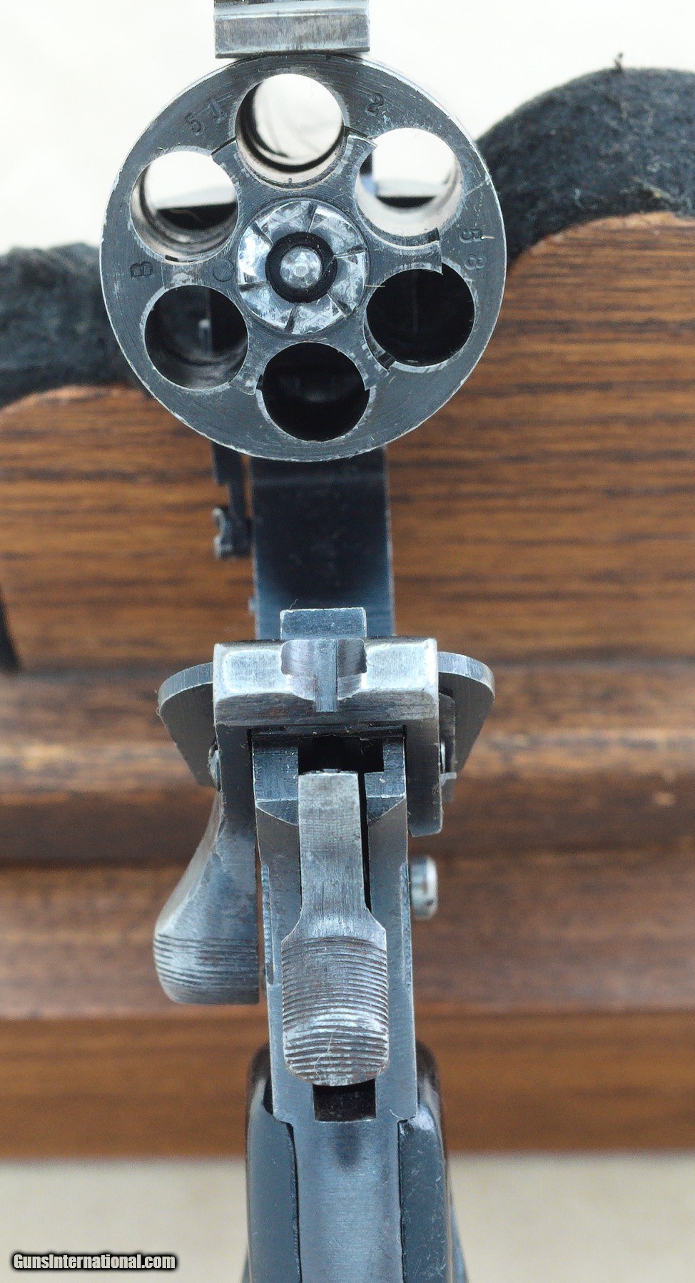 Description: Here we have a very unique 1968 mfg English made Webley & Scott MKIV break action revolver chambered in .38 S&W caliber. The Webley Revolver (also known as the Webley Top-Break Revolver or Webley Self-Extracting Revolver) was, in various marks, a standard issue service pistol for the armed forces of the United Kingdom, the British Empire and the Commonwealth, from 1887 to 1970. The Webley is a 6 shot top-break revolver and breaking the revolver operates the extractor, which removes cartridges from the cylinder. This particular example is in great physical and mechanical condition and all functions operate as they should. The action locks up tight when hammer and trigger are in the fired condition and the top break action operates smoothly and closes tightly. The 4 inch barrel has a bright bore and strong rifling. The hard rubber grips are in outstanding condition and on the bottom of the grip is a lanyard loop. There is some high edge wear and the finish is thinning in some areas. The sights are a notched rear and blade style front. This gun has English proof marks and American import marks. If this gun could talk and tell it's history it would likely be very adventurous and eventful. A wonderful addition to a collection or a great beginning to a new one. PRICE: $595.00 We are Antique & Modern Firearms in Lexington, KY, a dealer of fine firearms since 1974. PH. 859-276-1419 We Buy, Sell, and Trade Firearms & Knives. Have an Individual Firearm, Firearms Collection, or Firearms Estate to sell, let us know, and we can buy or consignment sell it for you. NOTE: No additional fee for a Credit Card payment. SOLD Handgun Caliber: .38 S&W (.38 Colt New Police, .38 Super Police) Manufacturer: Webley Model: MKIV Serial Number: 47284 Barrel Length: 4 Inches Manufacture Date: 1968 |