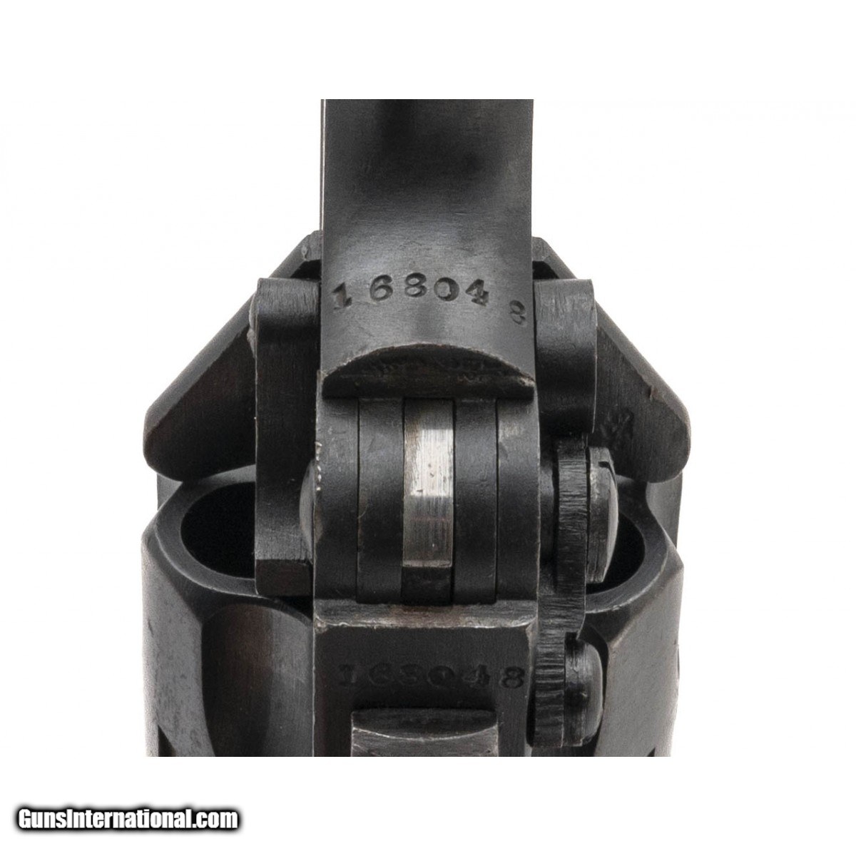 Description: " Serial No. 168048, made in 1915, .45ACP, 6"" octagonal barrel. 90-95% re-arsenal finish remains with discoloration along the edges. Bore is good with light surface frosting visible in the grooves. Cylinder has been cut to accept .45acp with moon clips.Grips show light usage and handling wear. SOLD Curio/Relic: Yes |