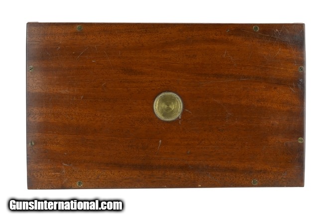 Description: " Presentation Cased Webley & Scott R.I.C Pattern Revolver. E.M Reilly Retailer marked. Beautiful presentation model Webley & Scott R.I.C pattern revolver that is retailer marked E.M Reilly. This gun is in excellent condition with 97% of the original nickel finish. Engraving is nice and sharp. Grips are excellent original one-piece ivory grips. The case is in excellent condition with all of the accessories. The case has an E.M Reilly label that is in perfect condition. This case houses two cap tins that are both E.M.Reilly marked. Absolutely beautiful Webely and Scott revolver in a beautiful retailer case with accessories. SOLD |