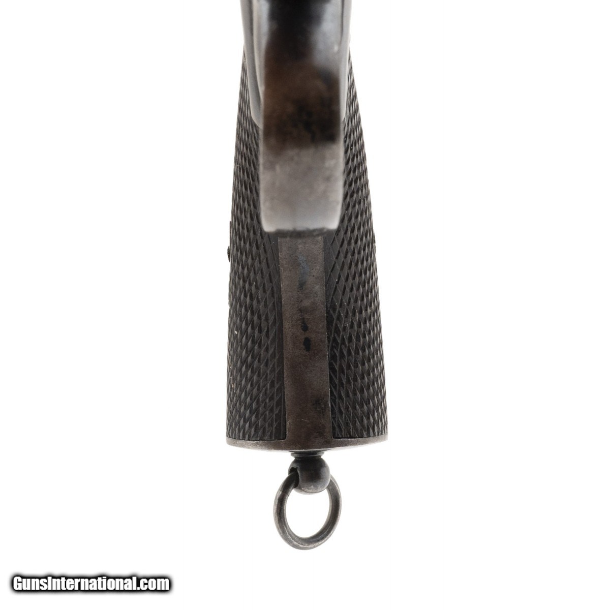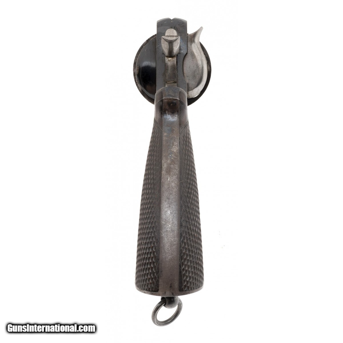 Description: " Extremely rare .50 caliber Webley. Top strap is marked ""H. Allport & Son's Patrick St. Cork"". Metal has approximately 90% original high luster blue. Left and right side of frame have Webley bullet logo. Grip checkering is excellent. Action works perfectly. Bore is excellent. A very desirable Webley! SOLD |