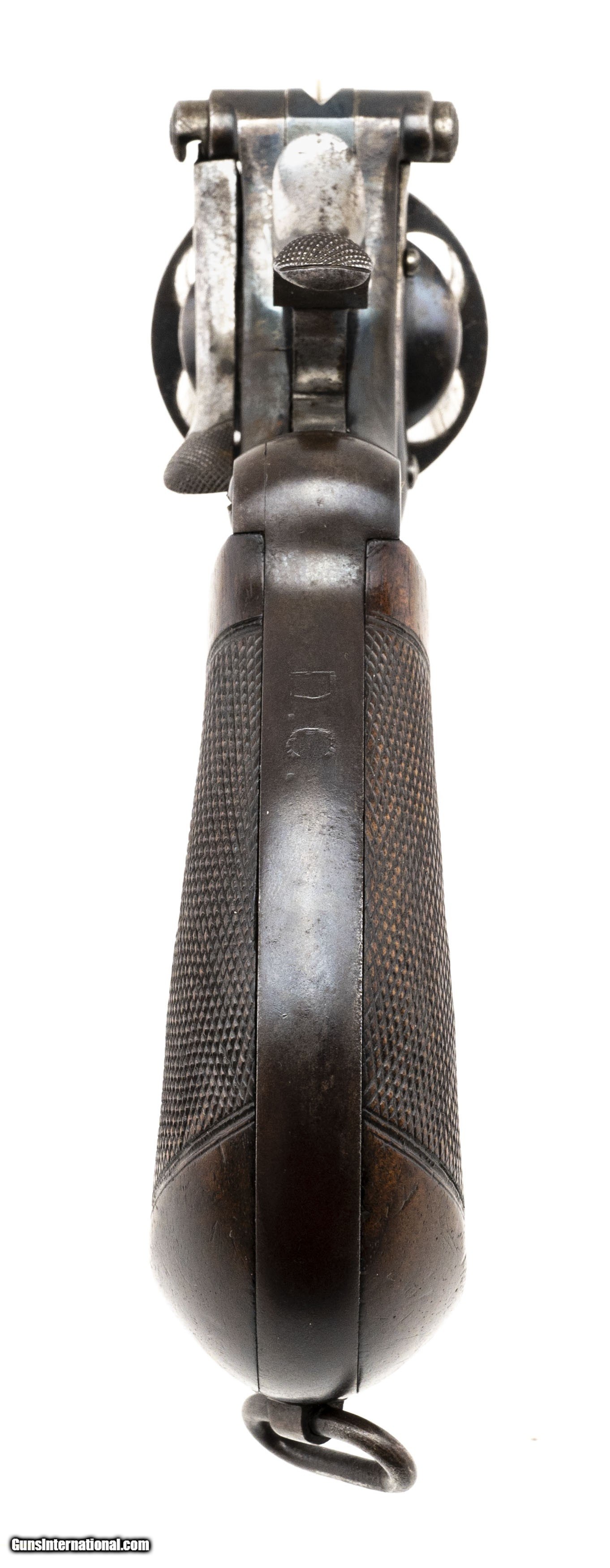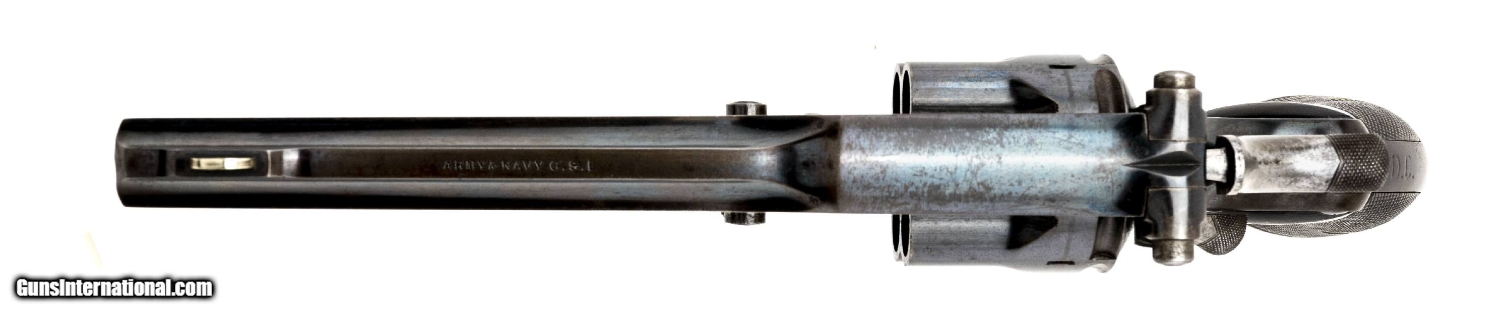 Description: "Scarce second pattern. Top of barrel rib is marked ""Army & Navy CSL"". Barrel is 5.75"". Bore is excellent. Action works perfectly. Cylinder has the ""church steeple"" flutes. Metal has approximately 90%-94% blue with the main loss on grip straps. Back strap is marked ""D.C."" for Dominion of Canada. Grips are very good plus with sharp checkering. A desirable Webley variation. Curio/Relic: Yes Price: $4,950.00 Contact Seller |