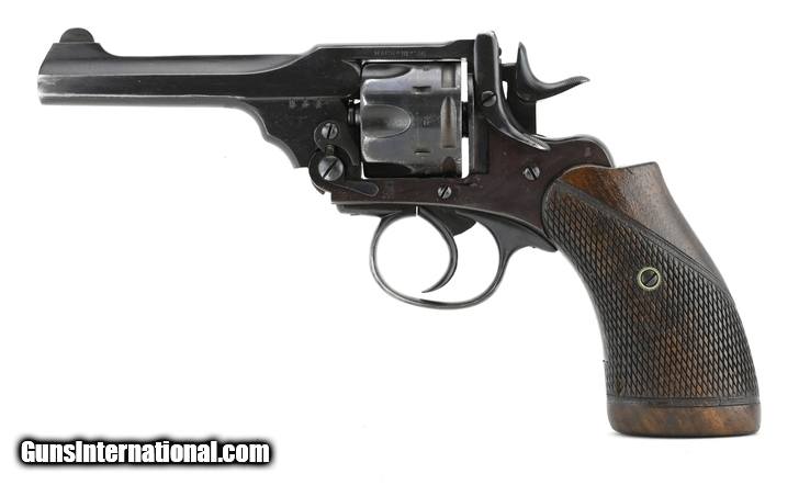 Description: " Webley MK III .38 S&W caliber revolver. Hard to find Webley MKIII .38 S&W caliber. Revolver has wooden grips (rare on this model as most were the molded type). Barel and cylinder are blue with 95% present. The frame Blue has a tinge of purple color. Scarce revolver.