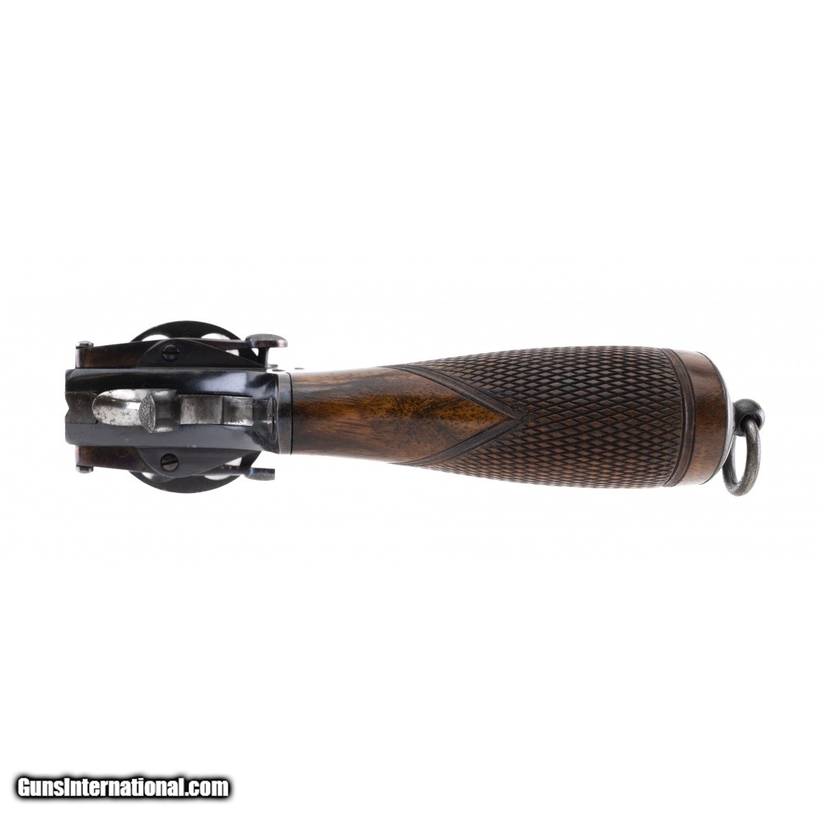 Description: " Advertised in 1884 by the Army & Navy stores as ""The Army & Navy Bulldog Extractor"". Barrel has been shortened to 3.5"". Top of barrel rib is marked ""York House Regent St. London"". The bore is excellent and the revolver works perfectly. Metal has a period deep lustrous blue. Grips are excellent. Left side of barrel is marked ""Webley's No. 4 476CF"". Beautiful condition. This fine revolver is a please to hold in your hand! SOLD Curio/Relic: Yes |