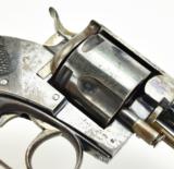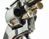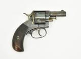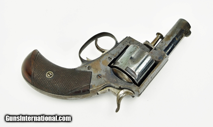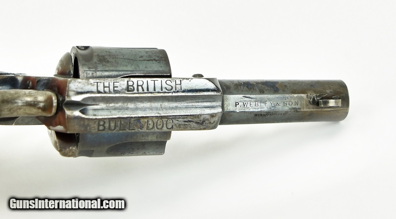 Webley No. 2 .450 caliber. Top strap marked “British Bulldog” Bore is excellent. Gun has approximately 70% bright blue with the rest flaked to a patina. Grips are excellent.