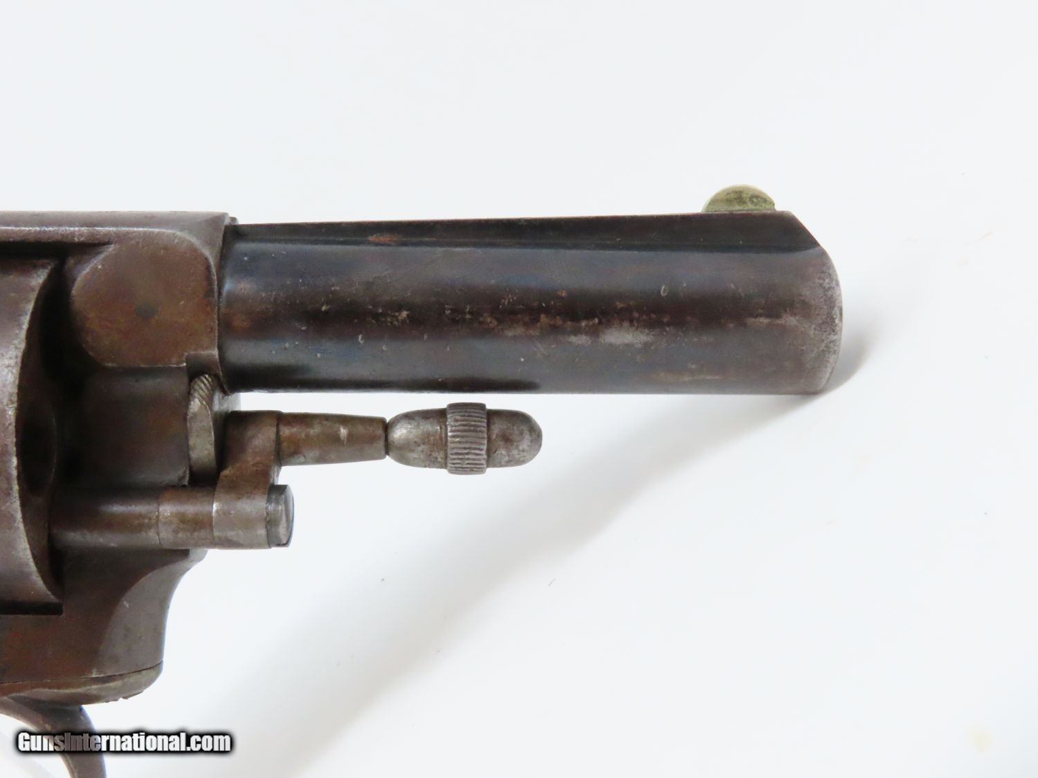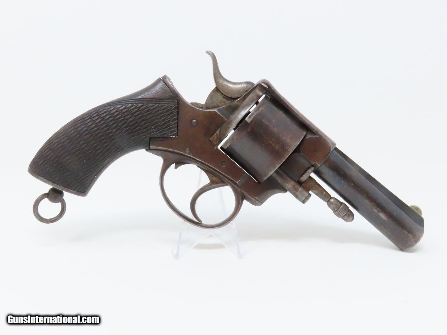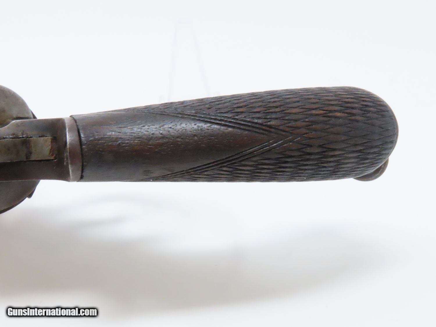 Description: Antique BRITISH 1870s WEBLEY RIC Number 2 Model .450 Revolver Featured in Webley Solid Frame Revolvers Here we present an antique British Webley RIC Number 2 Revolver in the .450 Revolver Cartridge, made in England circa the late 1870s-1880s. Webley produced their first pistol is 1853 and introduced their first double action in 1867. The success of the world-famous Webley Firearms Company was in no small part due to the existence of the RIC. In 1867, Philip Webley launched a new compact revolver design, which was to achieve recognition throughout the world and remain in production for more than 60 years. Webley secured a contract to supply his weapon to the RIC in January 1868. By a stroke of good fortune it ensured the financial success of the company and established it as the foremost supplier of personal firearms to the Government and Colonial Forces for years to come. According to “The Webley Story”, by William Dowdall, published by Commonwealth Heritage Foundation, June 1987, it states that “In September 1869, Lord Berkeley (C.S. Paget) presented a pair of the 1867 pattern Webley R.I.C. revolvers to Brevet Major General, George Custer, later commander of the 7th U.S. Cavalry." Custer, with his command, was killed at the battle of the Little Bighorn, in the U.S. State of Montana, in 1876, It is said that he was carrying these pistols at this battle. The pistols have never been recovered.” This very revolver is pictured on page 158 of “Webley Solid Frame Revolvers: Models RIC, MP, and Number 5” by Black, Davis, and Michaud. This is The overall condition is very good. The action (hammer/trigger) is strong, though the cylinder index and lockup are intermittent. The bore is dark with strong rifling. Original blue and plum patina. The serial number is “10555”. The left side of the frame is marked “WEBLEY’S/R.I.C./No. 2 450 CF”. Here is a nice documented Webley for display! Own the original! This is a legitimate antique and not a reproduction. Barrel is 3-5/8 inches. Caliber: .450 Revolver (Centerfire) Overall condition as seen in photos. Very Fast. Very Safe. FREE SHIPPING WORLDWIDE. Delivered directly to your door by express mail! Guaranteed AUTHENTIC & Includes CERTIFICATE OF AUTHENTICITY. ancestryguns $1495 #20524 SOLD Antique: Yes |