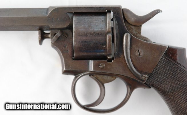 Description: BRITISH WEBLEY PRE R.I.C. .380 CF CAL. 4 ¼” DOUBLE ACTION REVOLVER CIRCA 1870’S. All matching and all original. Stamped on top strap “P. WEBLEY &SON/LONDON & BIRMINGHAM”. Very good overall with original blue and patina evenly mixed. Excellent walnut grips with nice checkering. Working order and excellent bore. This exact revolver is pictured in the book “WEBLEY SOLID FRAME REVOLVERS” by Black, Davis and Michaud with listed serial number 30953. Scarce and rarely seen for sale. SOLD Antique: Yes Handgun Caliber: .380 Revolver |