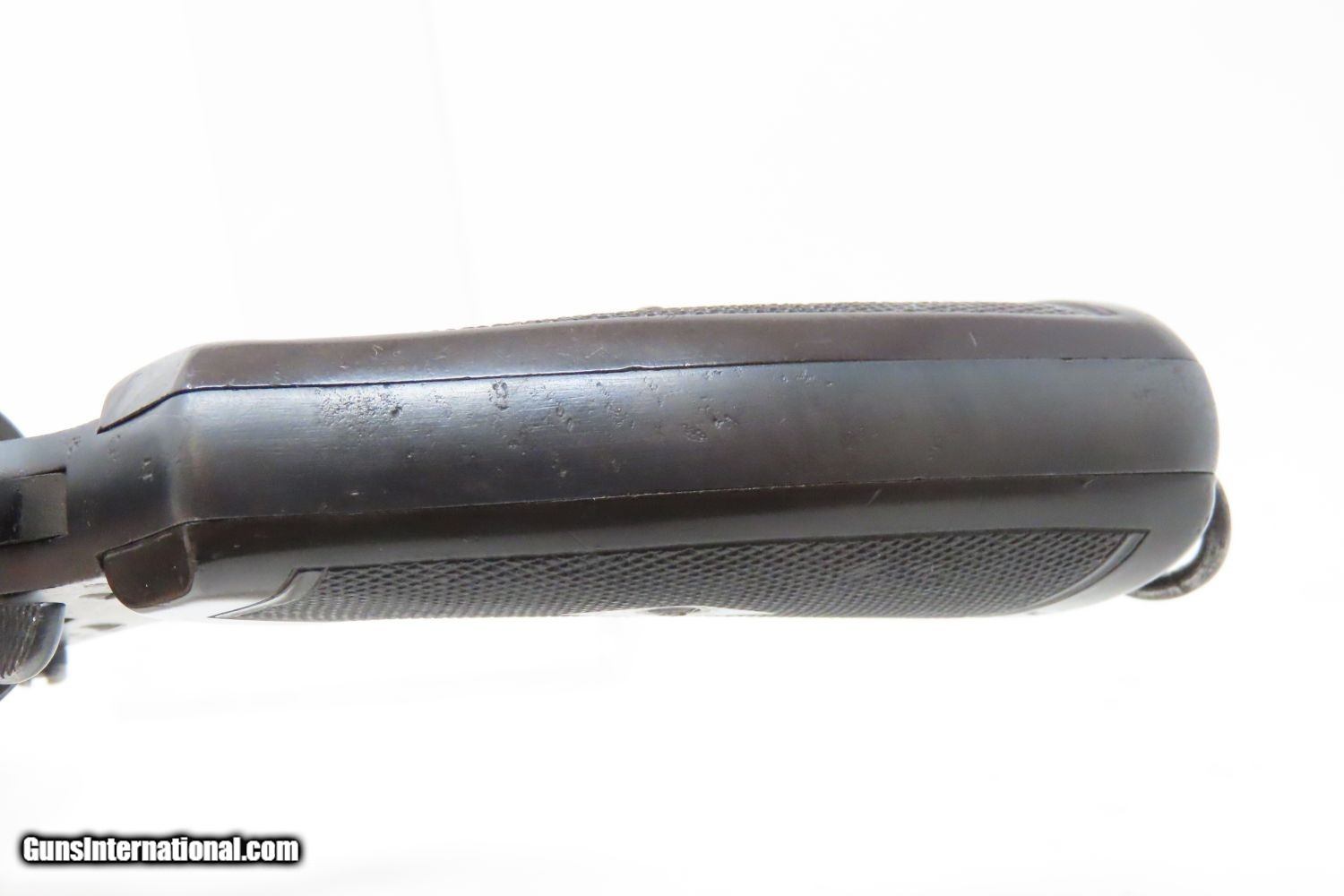 Description: c1917 WORLD WAR I British WEBLEY & SCOTT Mk VI .455 ROYAL NAVY Revolver C&R British MILITARY Service Revolver Here we present a World War I Era British Webley Mark VI Royal Navy Revolver in .455, made in Birmingham, England made in 1917 with a total production of approximately 125,000 revolvers. The Webley Mark VI was officially adopted May 24, 1915 and produced between 1915 and 1923. It was initially intended as an officer’s close-in weapon during the seesaw trench warfare of World War I, however, it became the standard sidearm for British and Commonwealth troops for the duration of World War I. Though they were considered obsolete in favor of other arms during the 20s, they remained in service through and long past the Second World War and saw action during the conflict. This is a full-sized British military revolver in .455 Webley. It features a top-break design with an automatic star ejector. Numerous proofs are observed throughout. There is the large broad arrow on the top of the frame and “N” on the top of the grip that were the markings of the Royal Navy. The overall condition is fine. Original finish. Robust, tight action. Bright bore with sharp rifling. The grips are in good shape with less than average wear. “M” marking on the bottom of the left grip. Markings are clear and the numbers match. This firearm is classified as a Curio & Relic. Barrel is 6 inches. Caliber: .455 Webley Overall condition as seen in photos. Very Fast. Very Safe. FREE SHIPPING. Will need to be sent to your local FFL or C&R licensee. This firearm is classified as a Curio & Relic. Guaranteed AUTHENTIC & Includes CERTIFICATE OF AUTHENTICITY. ancestryguns $2275 #215174 SOLD Curio/Relic: Yes |