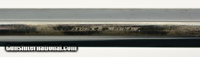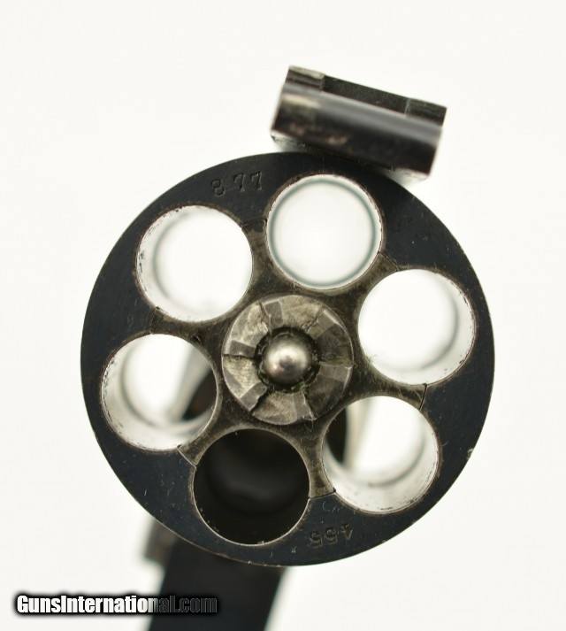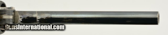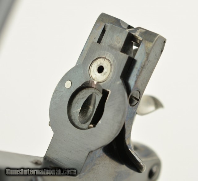 Description: Serial #20877 (Martin #4593), .450/.455, 7 1/2" barrel with an excellent, bright bore. This is an extremely handsome revolver that has matching serial numbers throughout, including the grip panels, and retains 98-99% of the original lustrous blue finish, with only traces of mild silvering along the raised edges and projections. The barrel rib and topstrap have the retailer marking: "ALEX.R MARTIN", "20 EXCHANGE SQRE. GLASGOW / & 128 UNION ST. ABERDEEN"; with the Webley & Scott "Winged Bullet" on the lower left side of the frame. The hammer, knurled target trigger, and cylinder retention stirrup retain their original bright metal finish, while the thumb lever has a commensurate amount of the original blue remaining. The finely checkered walnut grips are in very good-fine shape with a few minor bruises and handling marks on both panels, some flattening of the points, and a single small chip at the top rear of the left panel. The lock-up is still solid and tight, and the action functions flawlessly. This is a superb example of a desirable WG Target Model, sold by a respected Scottish maker, and in excellent overall condition. C&R SOLD Curio/Relic: Yes |