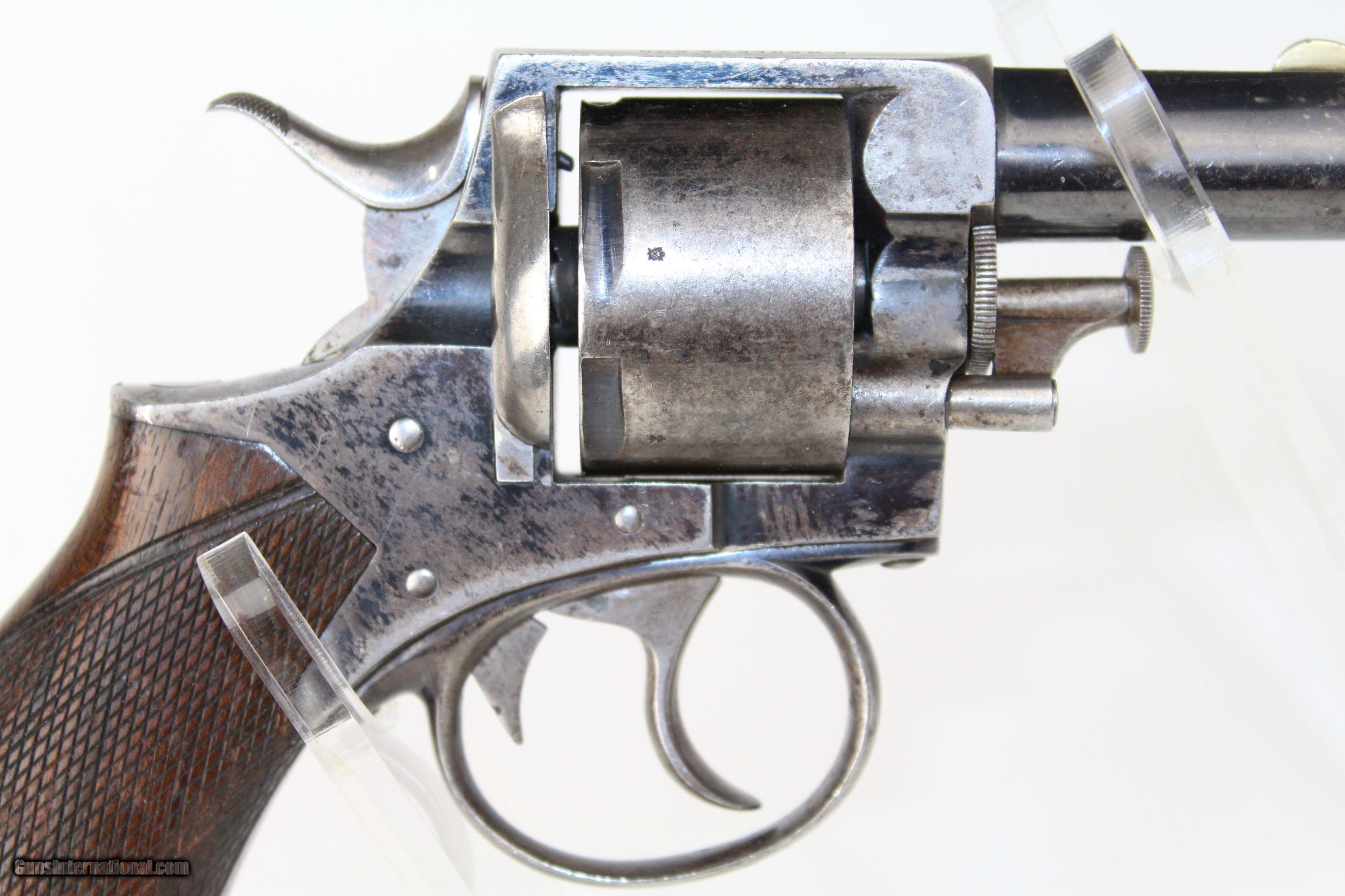 Description: P. Webley & Son METROPOLITAN POLICE Revolver Fine 1880s Antique British Police Marked Revolver Here we present an antique P. Webley & Son Model Metropolitan Police Revolver, made circa the 1880s in Birmingham, England. This revolver was an update to the Webley R.I.C. (Royal Irish Constabulary) which was adopted by many police forces throughout the British Commonwealth beginning in the late 1860s. Significantly, it was adopted by the London Metropolitan Police and was cleverly and successfully marketed as such. It holds 6 rounds of .450 Boxer and is short and stout, being intended for concealed carry by the police. It is also equipped with a lanyard. On the left side of the frame is stamped “WEBLEY’S” over a pair of cuffed hands above the marking “M.P.” for Metropolitan Police. A winged bullet is pictured above “W&S” for Webley & Son. The police inventory stamp and number “P/No/431” is found on the front of the frame, just under the cylinder axis pin. The top of the frame is marked “P. WEBLEY & SON/BIRMINGHAM”. Birmingham proof marks are located on the barrel as well as around the cylinder. The revolver loads via a loading gate on the right side and the ejector rod is nested in the cylinder axis pin. The cylinder is solid with no flutes. The overall condition is fine. The original blue finish is about 40% with the balance a soft gray patina. The markings are clear and legible. The original wooden grip is nicely checkered and in great condition. The bore is in very good condition with sharp rifling. The action is excellent in both double and single action. Here is a fantastic example of a Webley Metropolitan Police Revolver! Will include a nicely printed copy of the advertisement as seen in the photos. Own the original! This is a legitimate antique and not a reproduction. Barrel is 2-½ inches. Caliber: .450 Boxer (Adams) Overall condition as seen in photos. Very Fast. Very Safe. FREE SHIPPING WORLDWIDE. Delivered directly to your door by express mail! Guaranteed AUTHENTIC & Includes CERTIFICATE OF AUTHENTICITY. ancestryguns $2350 #6281 SOLD Antique: Yes |