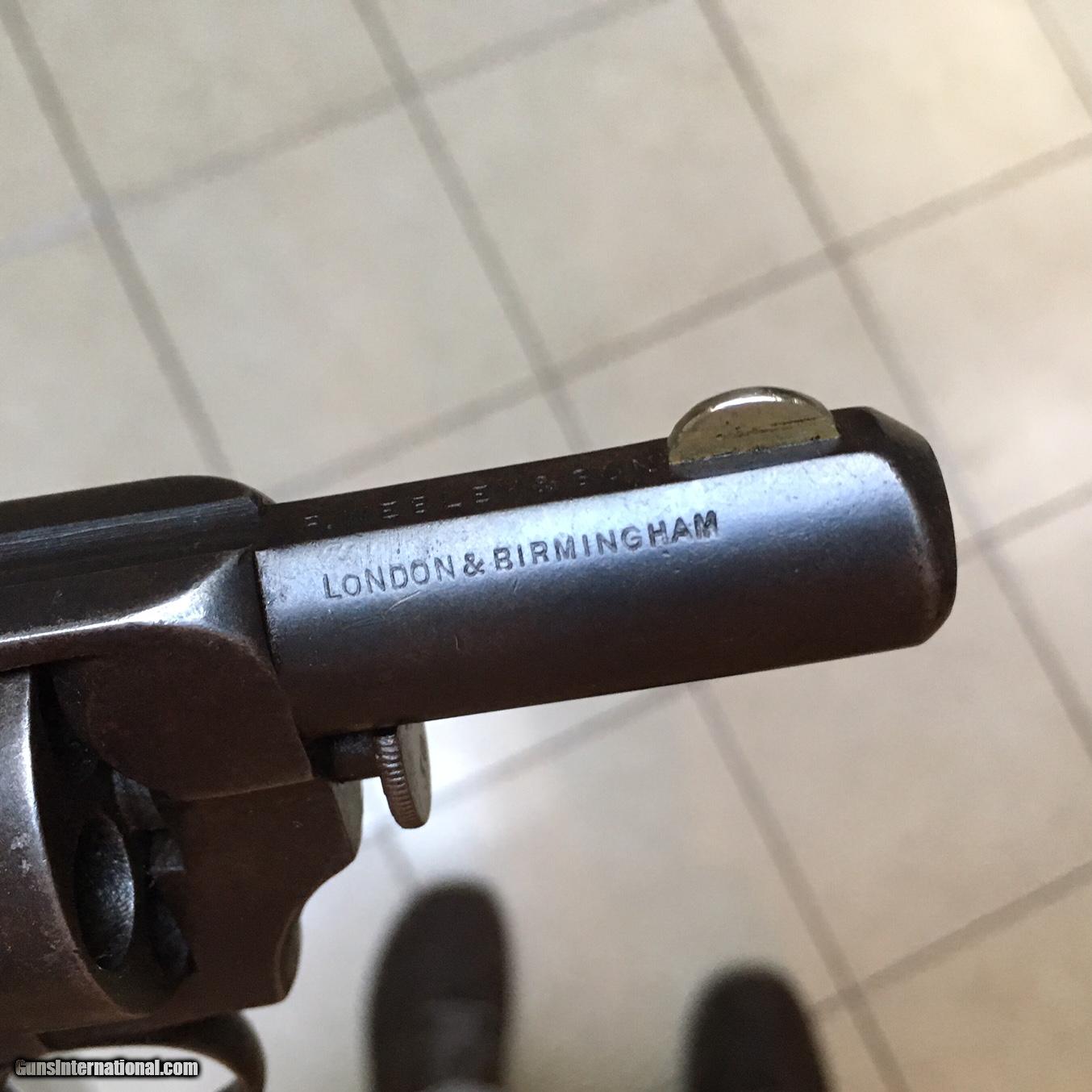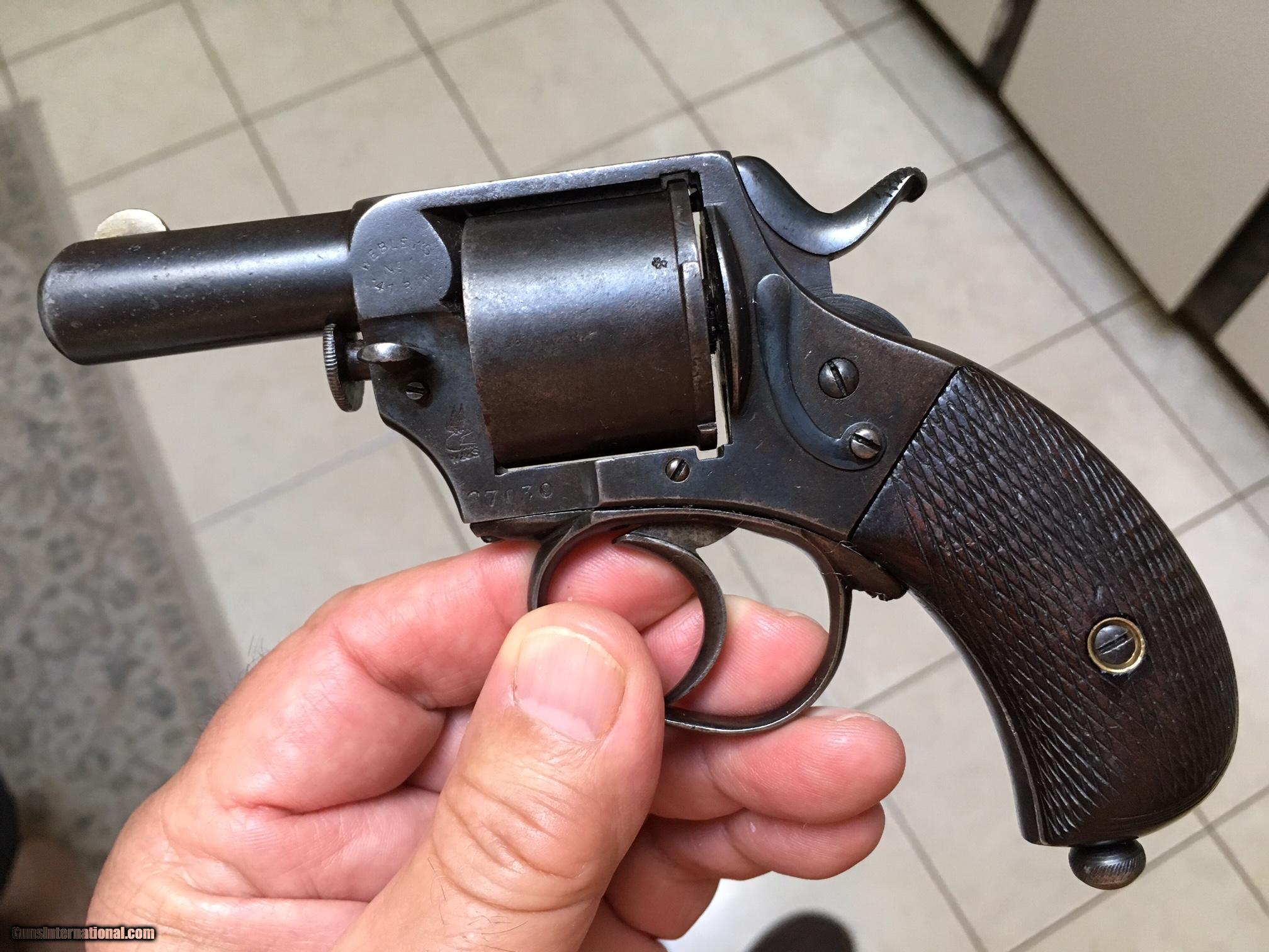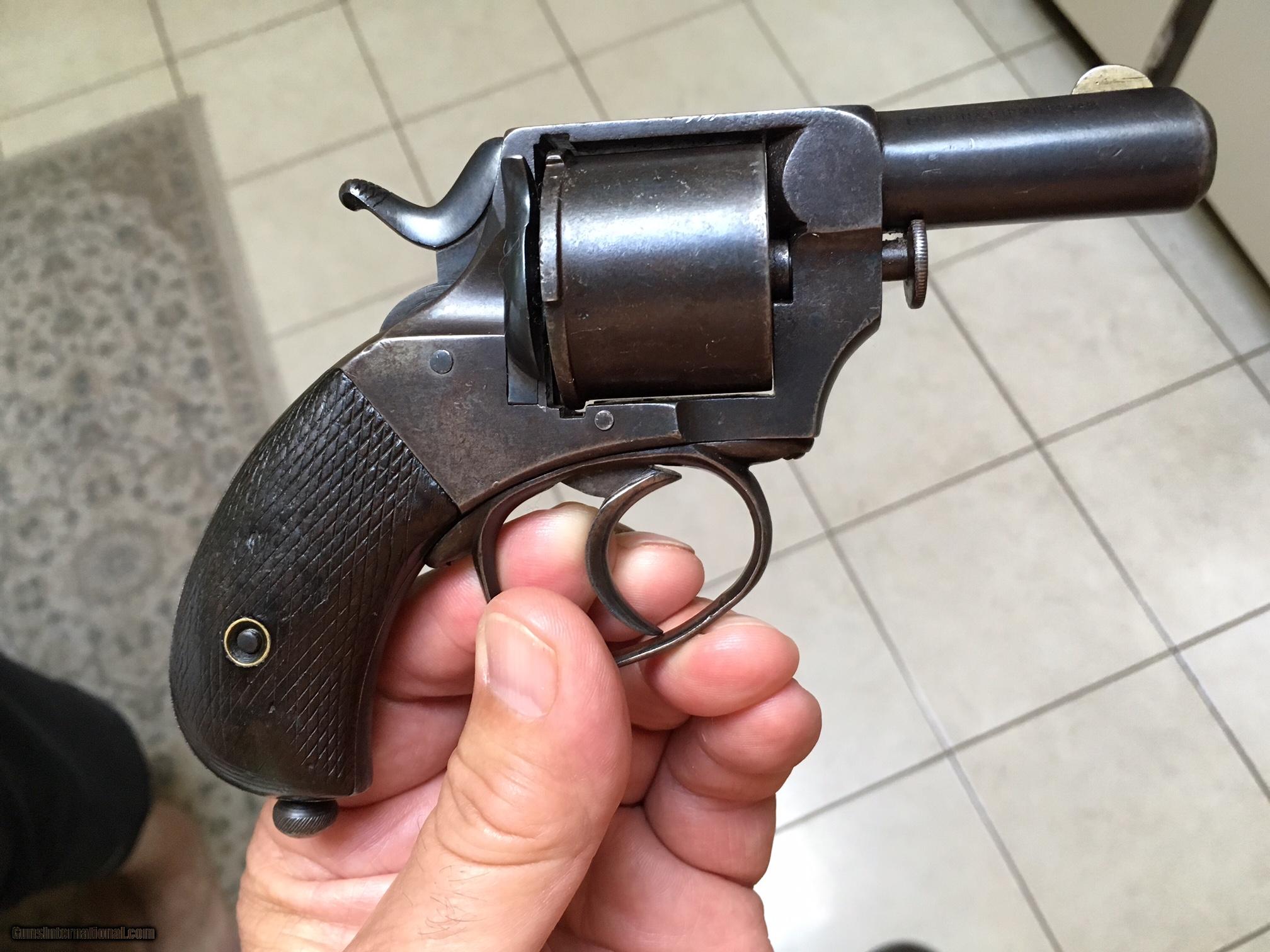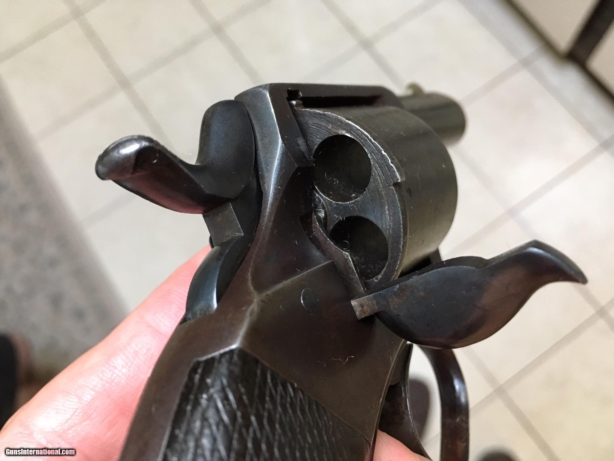 Description: Webley PUG Antique 41 cal rim fire revolver . Bulldog size, pre Bulldog, Very rare in 41 Rimfire caliber per Authors , only 11 know in collections.? Blue has all turned patina, these are rarely seen for sale , This one is all correct and matching ser#s, It locks up fine ,has half cock spring and empty case extractor screwed into the butt. Ser # 27030 mfg in the 1870's ( three numbers off the other one I'm selling.) The bore is a little rough but lands and groves are very visible.It's Marked( THE PUG,) P. Webley &son London and Birmingham on the top. A very early snubby revolver from England. SOLD Curio/Relic: Yes Antique: Yes |