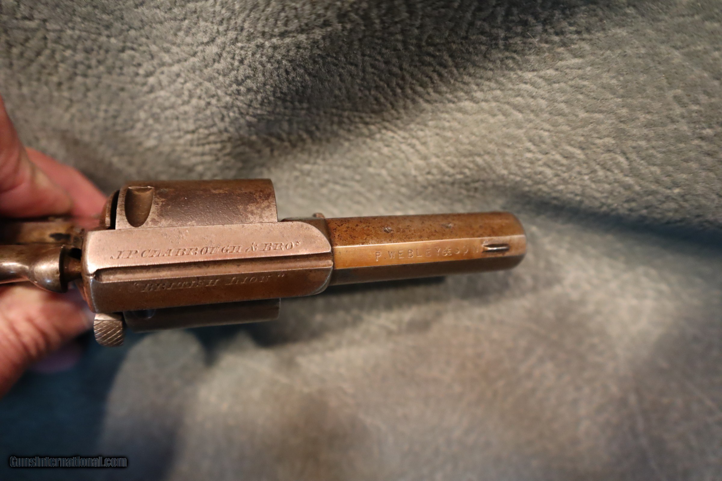 Description: Webley 450 2 1/2" barrel marked " J.P.Clabrough+Bro "British Lion". GUN COLLECTIONS WANTED FOR CASH! We buy, sell, consign and trade new and used firearms.We will pay finders fees and travel for large collections. This is our 47th year in business. We offer 90 day layaways with 20% down. No return on layaways. Firearms will need to be transferred through a FFL dealer. Prices reflect a cash discount. There will be 3% added to credit card sales. We trade for gold and silver. THANK YOU! SOLD |
