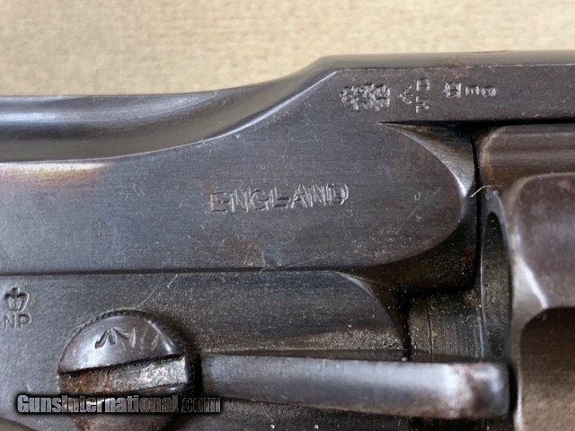 Description: A very nice original Webley Mark I British Service Revolver with N on frame behiind hammer indicating Naval issue. Serial number 30916. This is the nicest one of these we have encountered in years - most have seen lots of use and are worn out with serious condition issues. I would rate this revolver in very good to excellent condition overall. Revolver does accept half moon clips (re: .45acp). SOLD Curio/Relic: Yes Handgun Caliber: .455 Webley (.455 Webley Mk I, .455 Revolver, .455 Colt, .455 Colt Mk I, .476 Enfield, .476 Eley, .476/.455) |