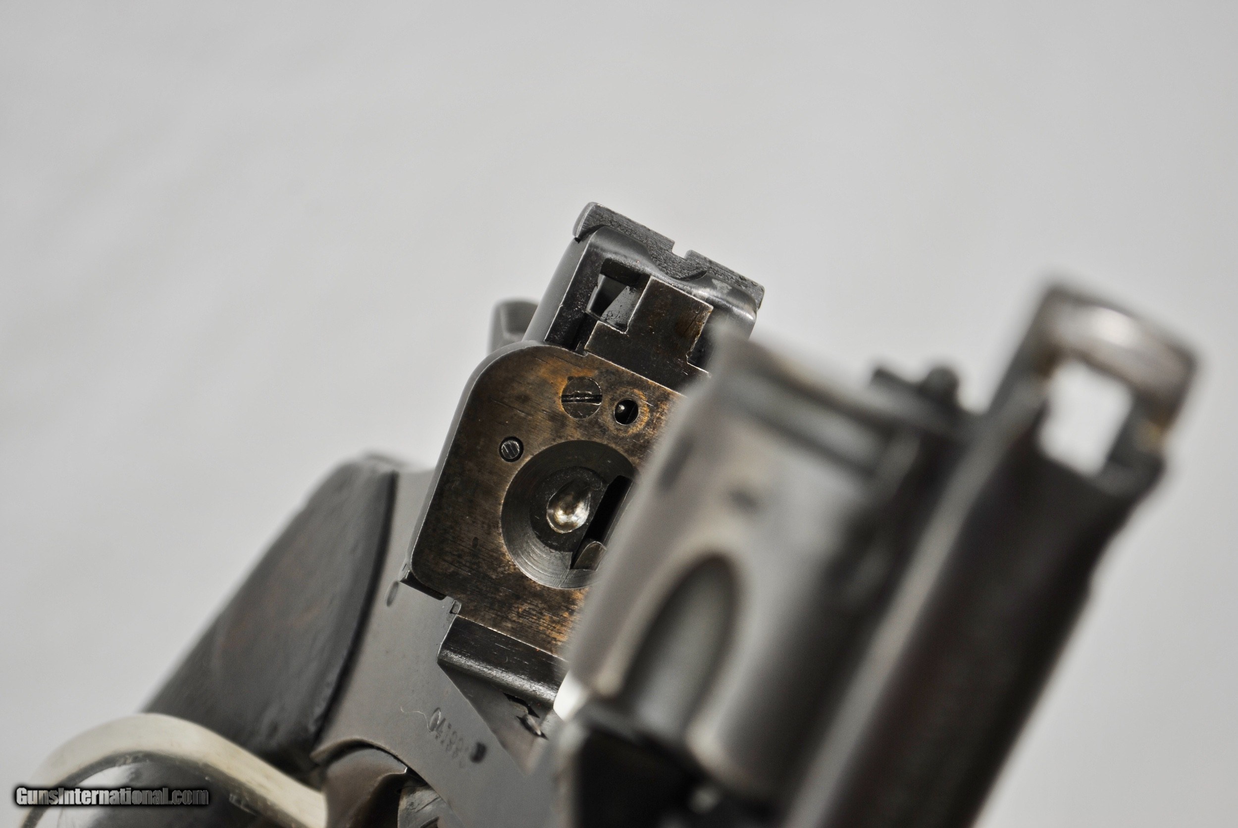 Description: Here is a Webley Mark IV Revolver in 38 S&W issued to The Hong Kong Police. Carry wear however much of the original finish remains strong. This is model that calls for bullet weights 145 to 200. Good functioning tight gun. Stamped HKP (Hong kong Police) on bottom of frame. Missing laynard loop (replacements are available). Excellent bore and cylinder condition. Shipping is $50. For inquiries please call Guy - 407-721-3748 SOLD |