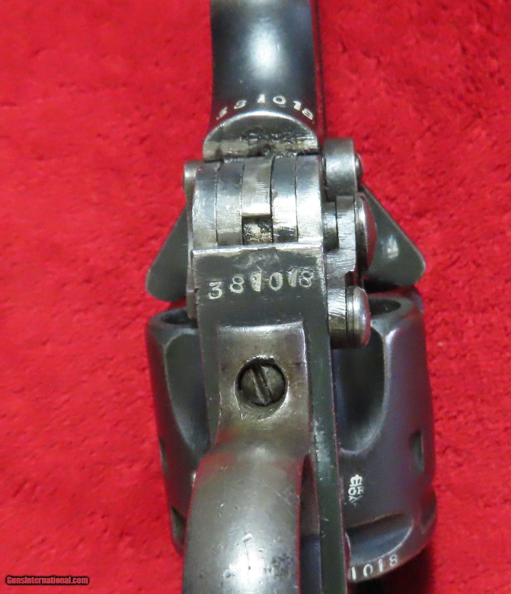 Description: Excellent Condition .455 Uncut Cylinder - Original Caliber with 6" barrel. $30.00 Shipping FFL or C&R required for shipping; All items shipped Priority Mail Please contact Gloria at 540-580-2762 (after 12 noon eastern time) or email commonwealthcollectiblesyahoo 4% Credit Card Fee Thanks for looking! SOLD Curio/Relic: Yes Manufacturer: Webley Serial Number: 381018 Barrel Length: 6 Condition: Excellent Metal Condition: Excellent Bore Condition: Excellent |