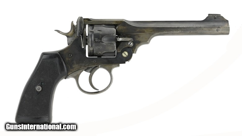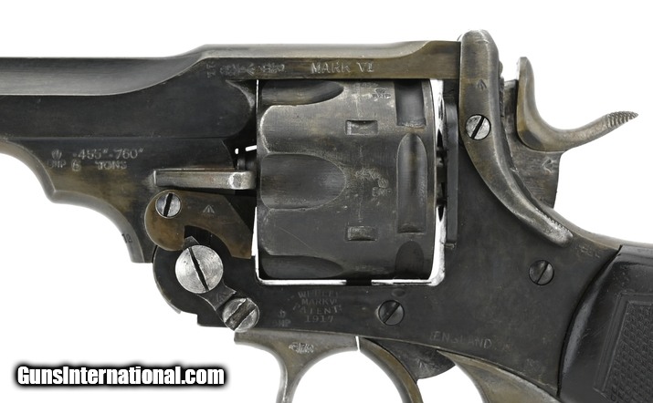 Description: Webley Mark VI .45 ACP caliber revolver. WWI British revolver. Cylinder has been cut for .45 ACP, bore has strong rifling with frosting. Good condition overall. Dated 1917.