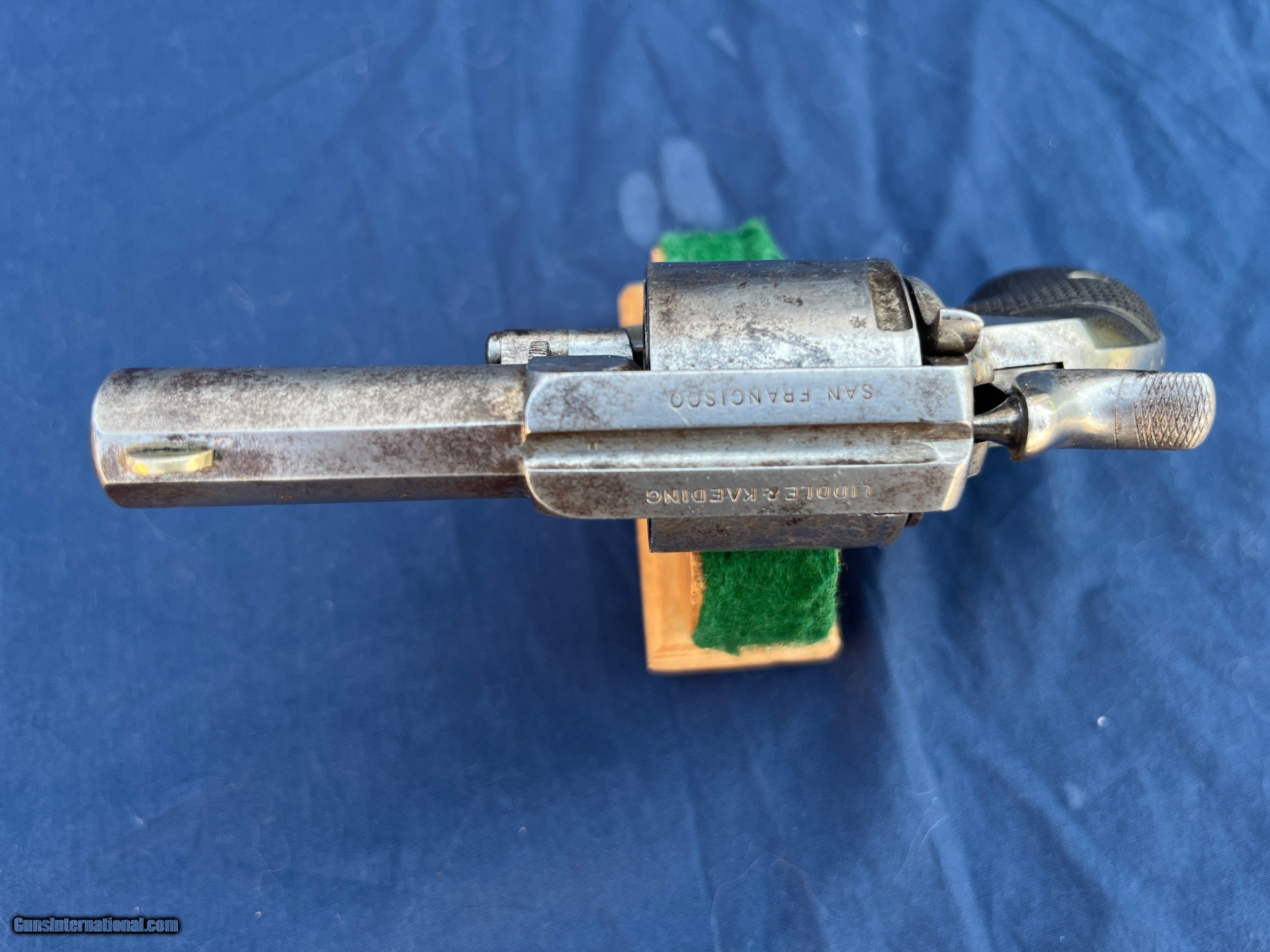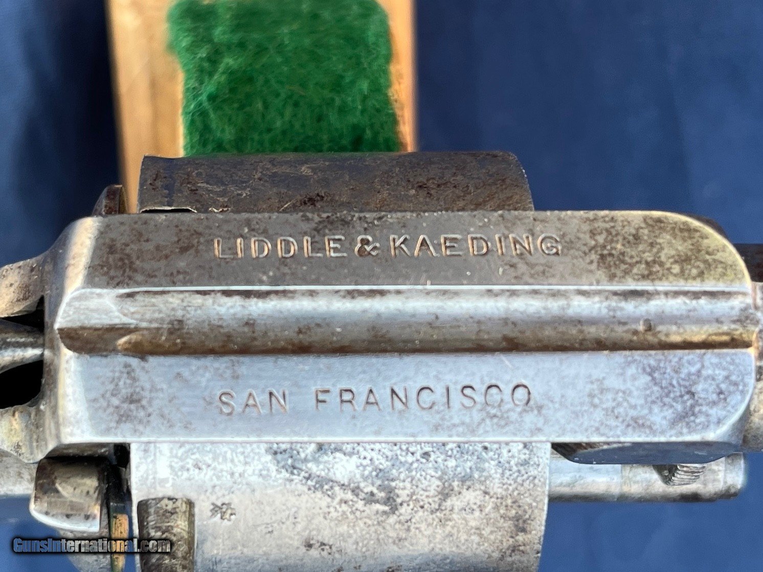 Description: This is a San Francisco marked Liddle & Kaedinig Webley No. 2 450 CF caliber D.A. revolver. The mechanical function is very good crisp and tight. The bore is good with strong rifling. This commercial Webley is serial number 50755 and is matching numbers. No chips or cracks in the wood grips. Nice old San Francisco marked Webley. Shipped to Lidde and Keading San Francisco. Very cool British Bulldog with some West Coast History. Please feel free to ask questions. I do offer a layaway plan and will consider trades. SOLD Antique: Yes |
