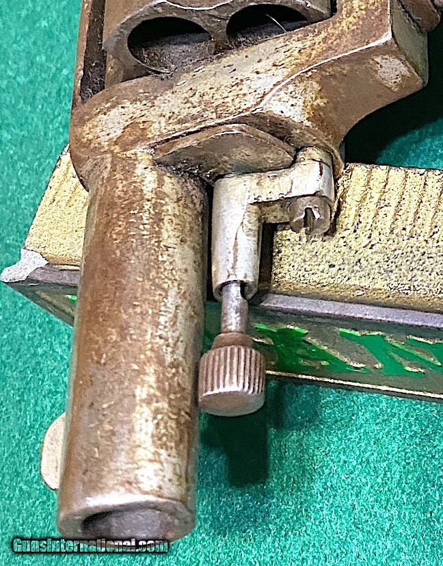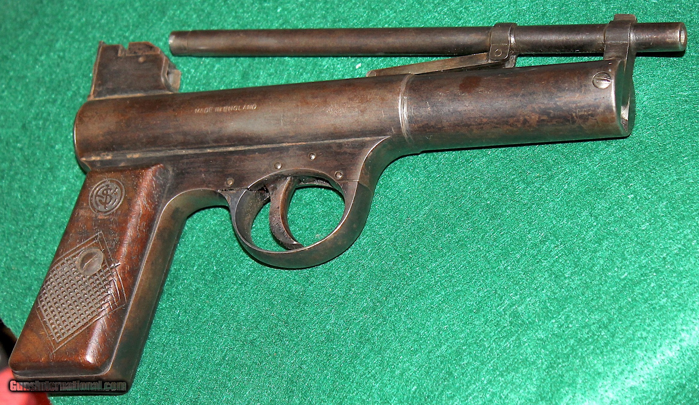 Description: TWO GUNS FOR THE PRICE OF ONE; AIR GUN == Webley mark one (1) Second Series == Tip up Barrel == Made in England 1924 == .177 calibre = 4 degit serial = Walnut Hand Checkered Grips = Attractive Patina = Ajustin screw at rear of Trigger Guard == Manual Safety === CAN BE SHIPPED to CANADA == ==========================BOTH CAN BE SHIPPED TO CANADA =============== BRITISH BULL DOG Designed .44 Russian = Five (5) Shot == One of very few made, serial # 79 , Belgium & English Proof markings == Lanyard Ring indicates Miltiary & Police use == Cylinder is free wheeling but locks up upon cocking and firing both Single & Double action == Bore is what to expect of a Black Powder gun 135 years of age. === All offers considerd === LAY A WAY Welcome, 3 equal payments over 60 days == We do not test fire or clean any item, sold as is found, no returns == MOTIVATED TO SELL , We love offers === Shipping to be determined by location === SOLD Antique: Yes |