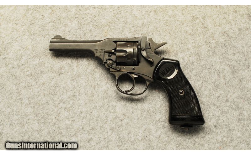 Description: Here we have a nice example of a Webley Mk IV chambered in .380 Mk II (or .380 MkIIz, or .38 S&W). Overall, the gun is in very nice condition, and bears a very discreet importation stamp on the underside of the barrel. Although the timing is a bit slu .380 ACP SOLD Metal Condition: Very good, with only some wear and minor usage marks Wood Condition: Good, with only minor scratches and dings Barrels: 4 Triggers: Single Sights: Fixed Item Location: Buda, TX |