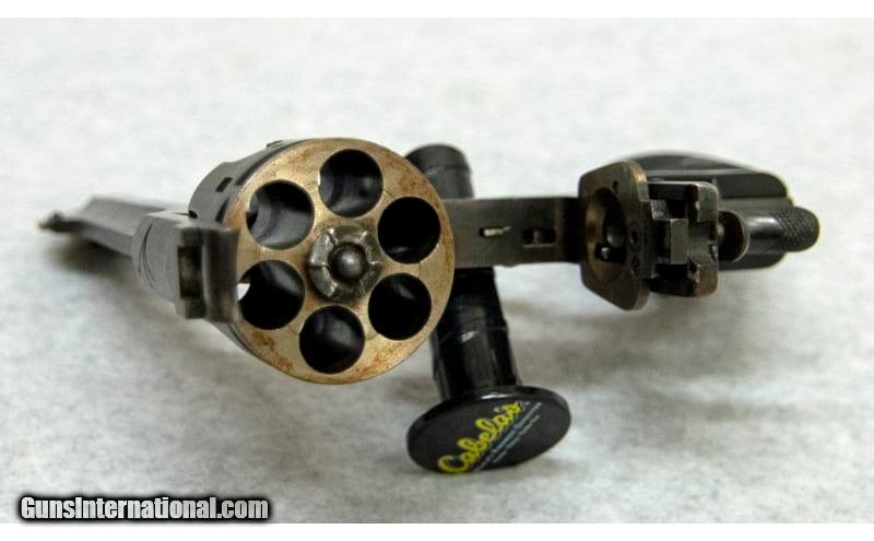 Description: Webley & Scott Mark VI, chambered in .45 ACP. Features include: DA, square butt frame, cylinder retention/removal via a cam lever at the hinge on the left side of the frame, 6 in. barrel, fixed sights, blue finish, top break 6 shot. This Webley was manufactured in 1916 as indicated by the date code on the left side of the frame. Someone has shaved the cylinder so that it can accept .45 ACP. Checkered grips are in great shape. Bore is in very good condition. Bluing is all there but the patina is showing here and there. .45 ACP SOLD Chambers: .45 ACP Metal Condition: Very Good Bore Condition: Very Good Barrels: 6' Sights: Iron Item Location: Fort Mill, SC |