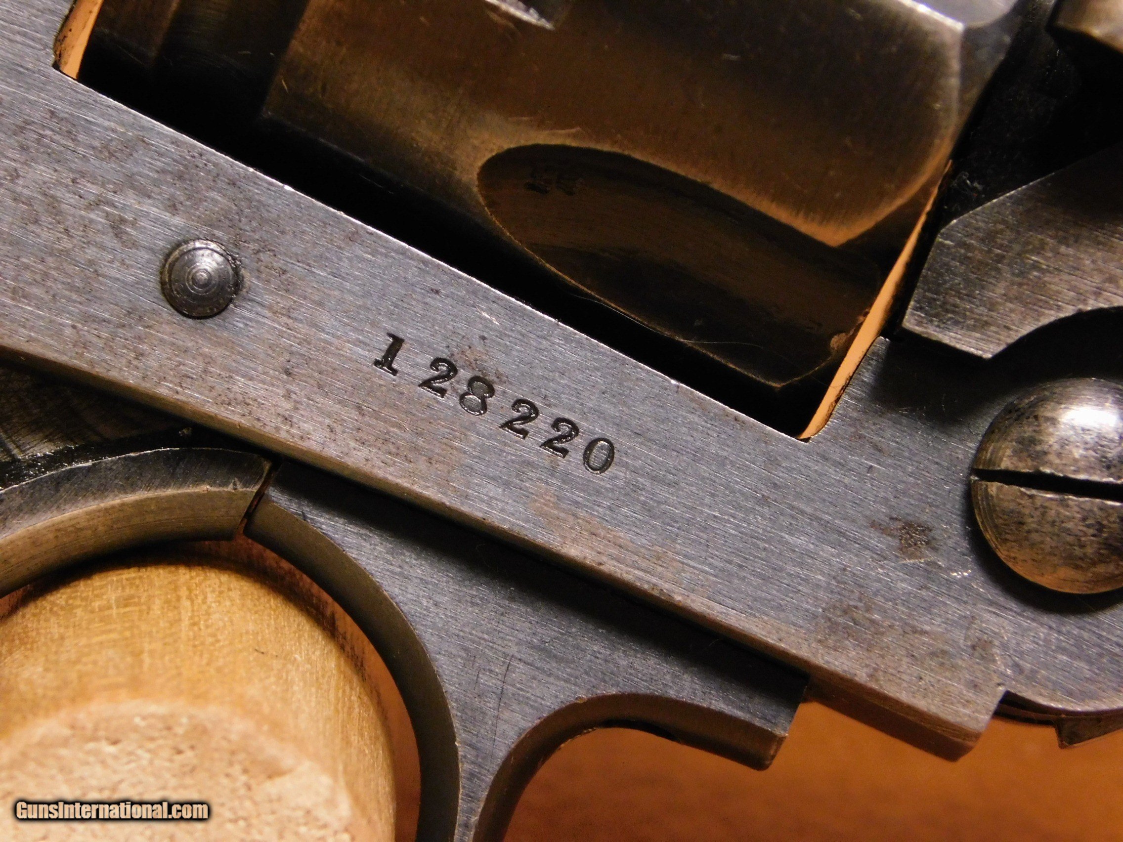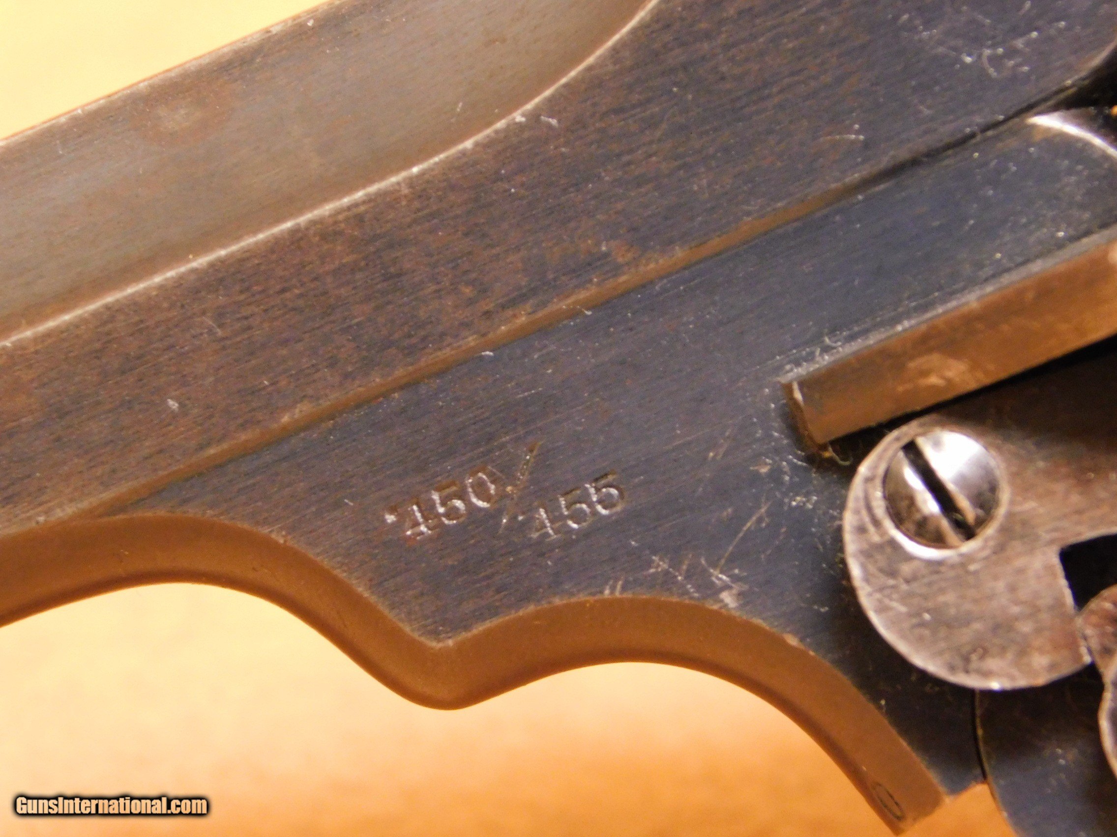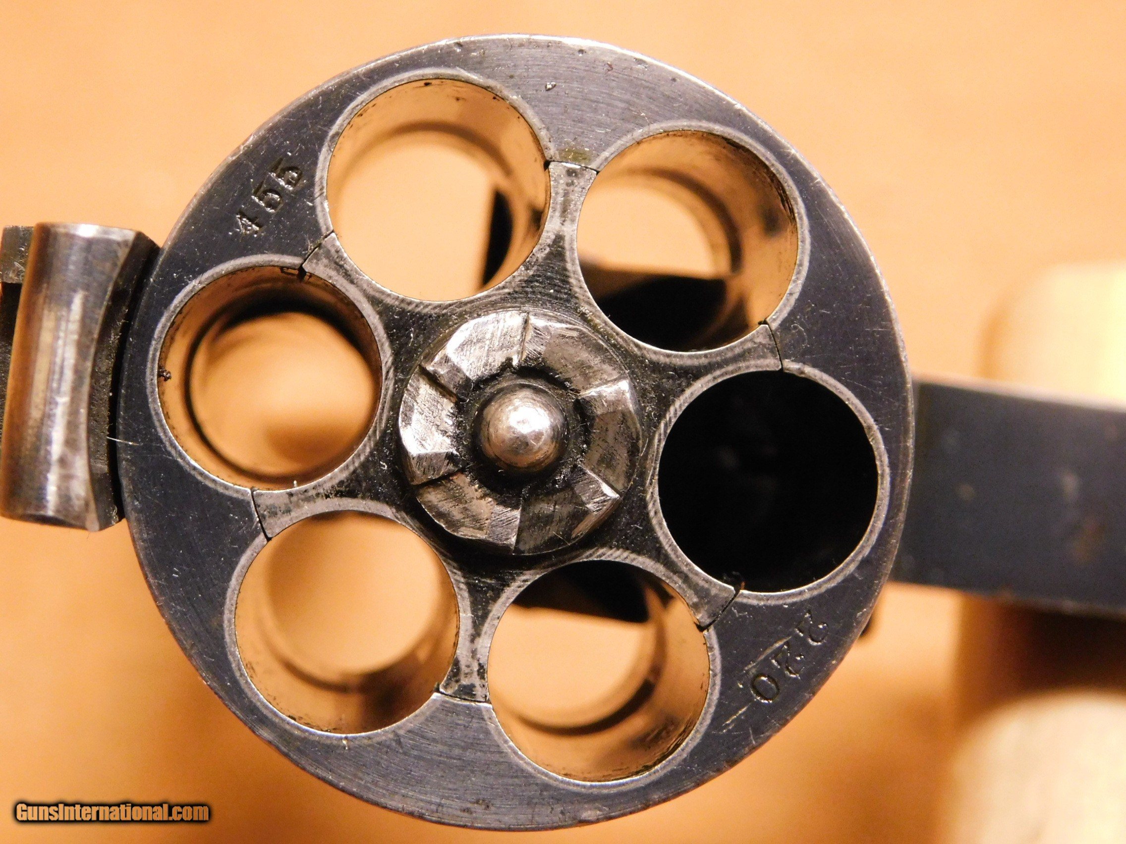 Description: This is a nice, commercial Webley & Scott WS Army Model revolver in .455 Eley. The serial number, number on the cylinder, and number near the hinge all match. The bore is great, with very minimal spots of frosting near the throat. Perhaps most notably, the top of the barrel is stamped with the address to John Rigby & Co. There also seems to be some sort of number on the trigger guard, perhaps a unit or part number. All items are also available for sale in our brick & mortar store and are subject to prior sale. Think long, think wrong. Payment On firearms, we typically only accept credit cards or money orders/cashier's checks.