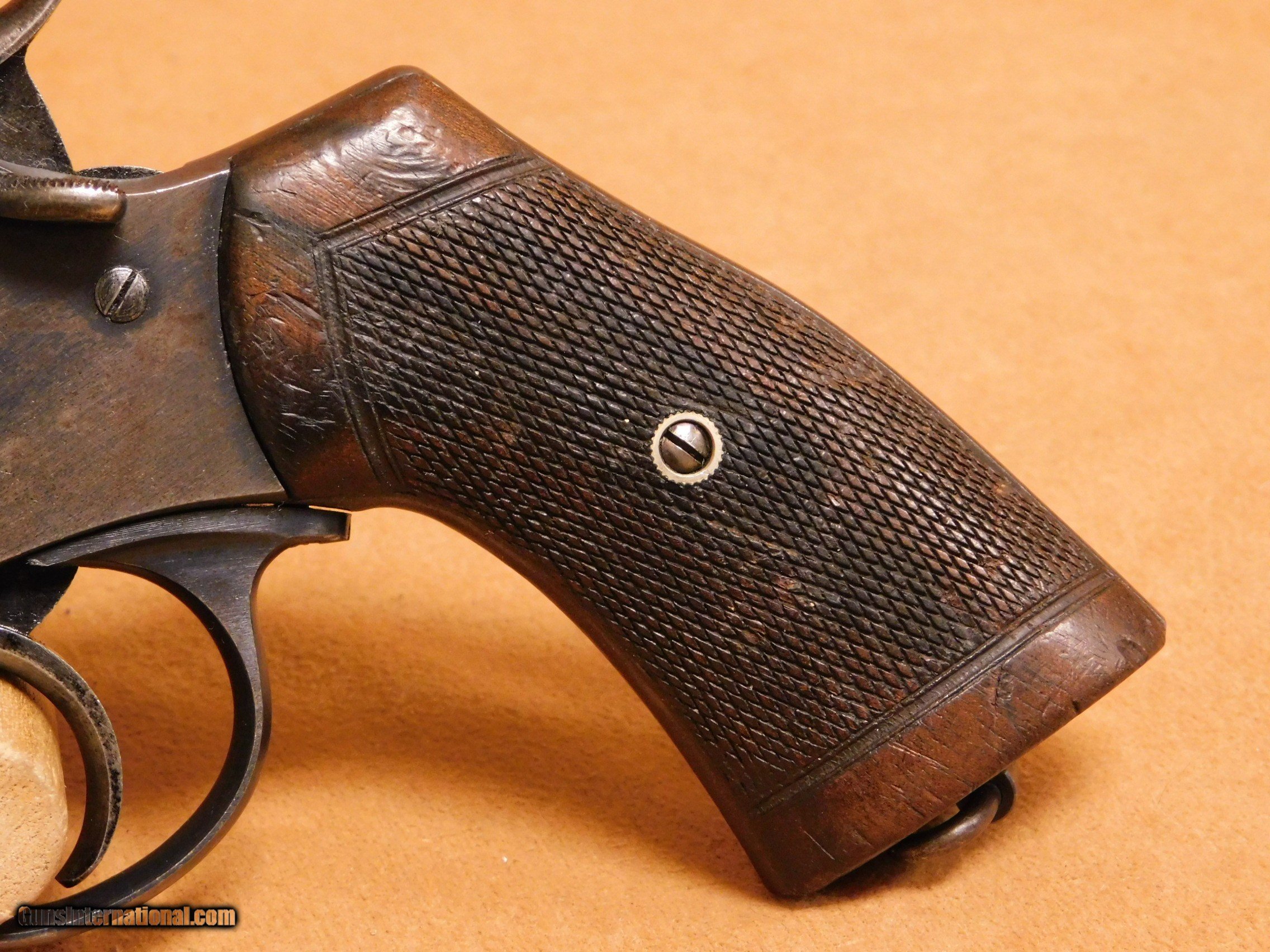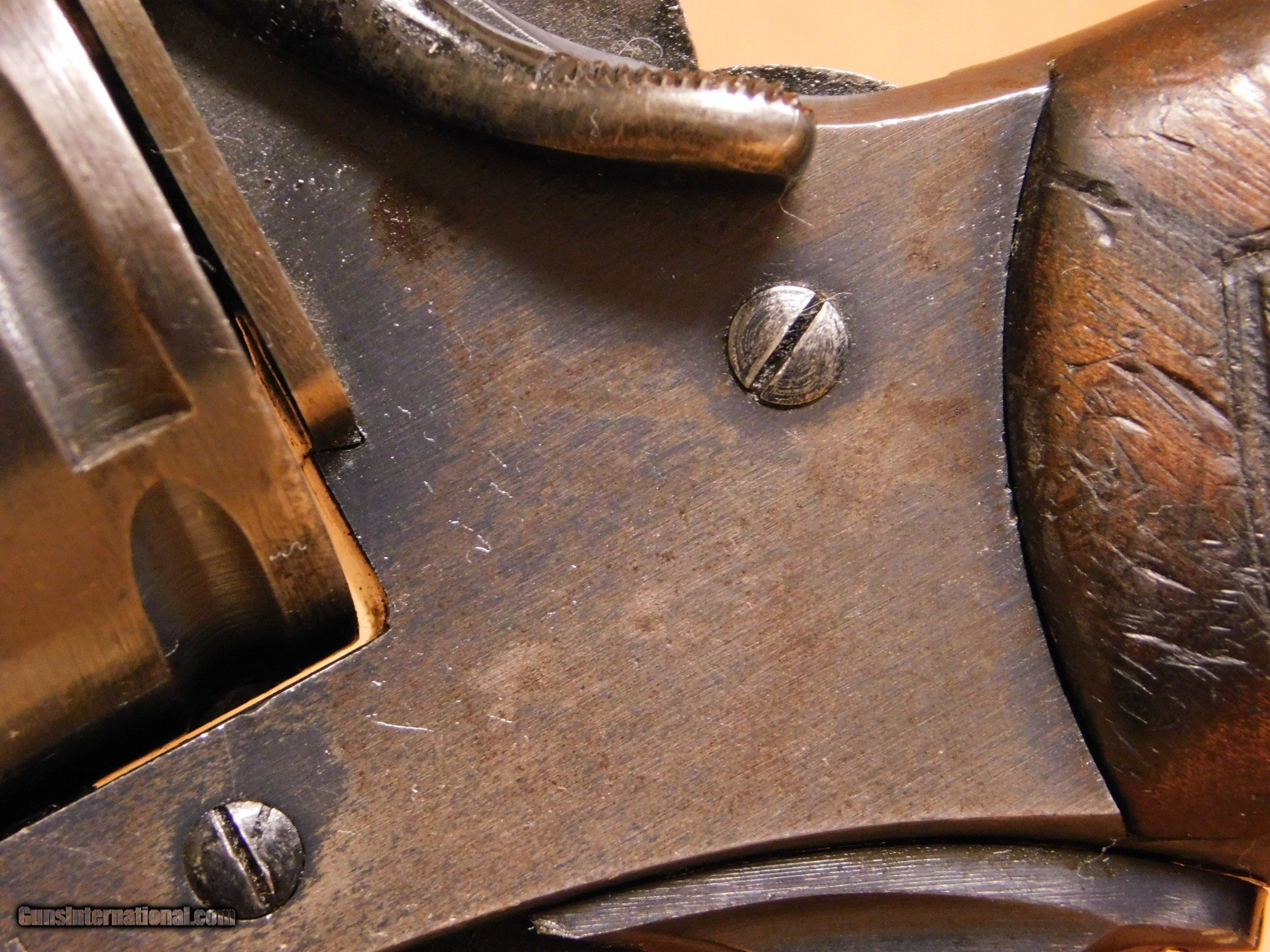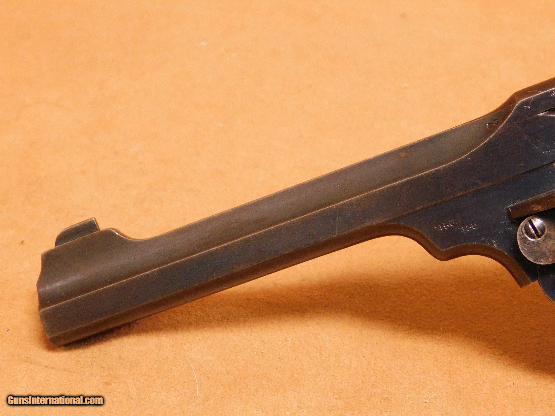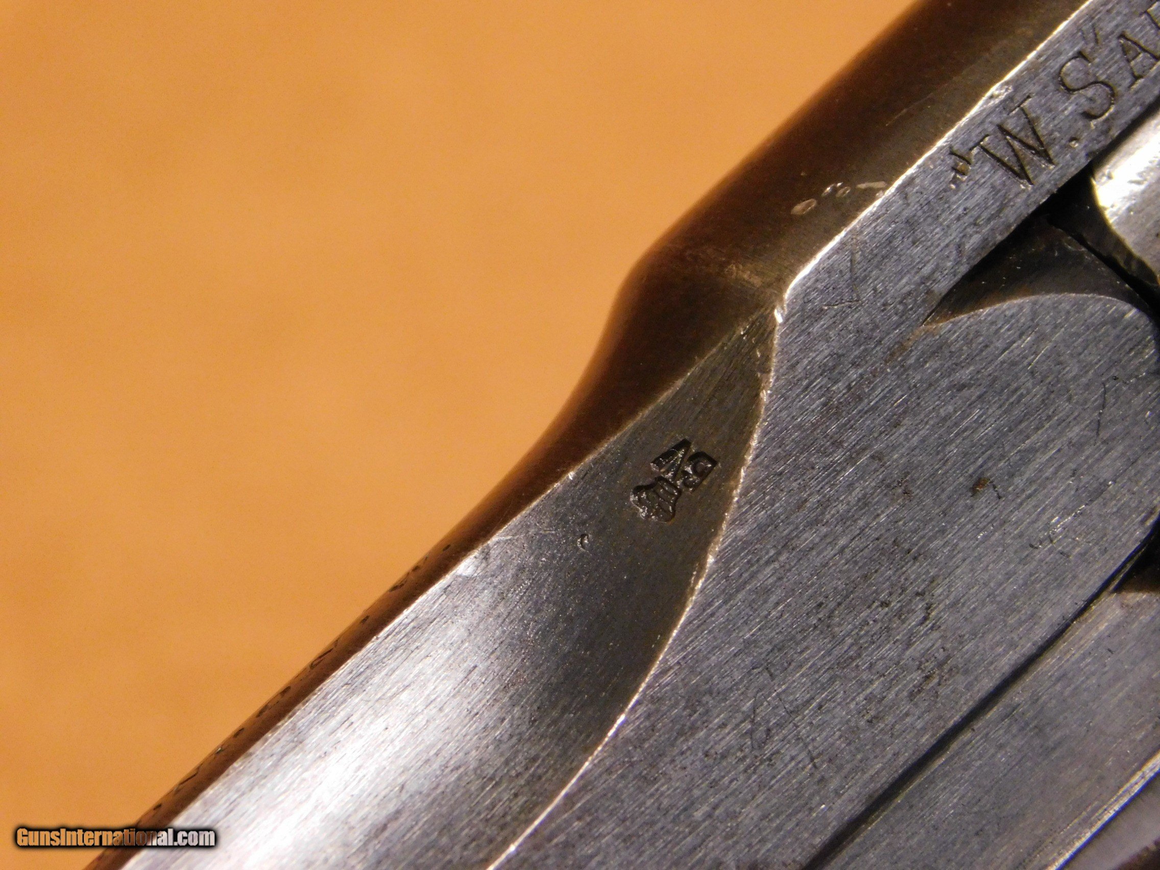 Description: This is a nice, commercial Webley & Scott WS Army Model revolver in .455 Eley. The serial number, number on the cylinder, and number near the hinge all match. The bore is great, with very minimal spots of frosting near the throat. Perhaps most notably, the top of the barrel is stamped with the address to John Rigby & Co. There also seems to be some sort of number on the trigger guard, perhaps a unit or part number. All items are also available for sale in our brick & mortar store and are subject to prior sale. Think long, think wrong. Payment On firearms, we typically only accept credit cards or money orders/cashier's checks.