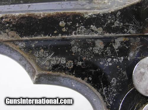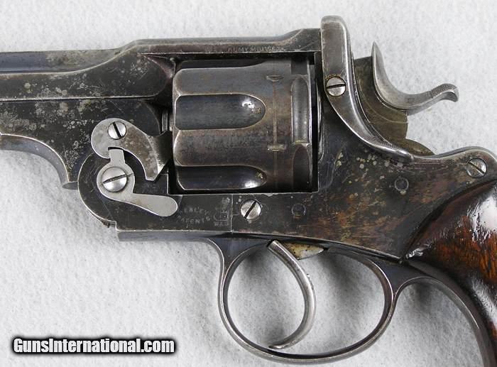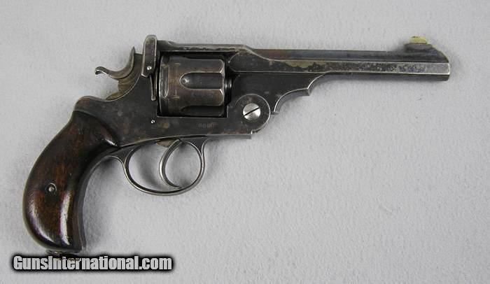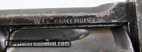 Description: #3875 Webley W G Army 455/476 Round Butt This is an early commercial model Webley W G Army revolver with serial number 8660 and is marked 455/476 caliber. It will chamber a 45 Long Colt cartridge also. The mechanical function is excellent, crisp and tight. The bore would be very good bright and shiny except for some fine corrosion in the grooves. All of the markings are sharp and crisp and this has the birds head butt. The grips retain almost all of the varnish and it retains about 70% of it original blue finish. I would consider trades for pre 1899 ANTIQUE PISTOLS and rifles on any of my items.. WHAT DO YOU HAVE TO TRADE? Ask about our 30-90 day lay-away program. We accept Bank Check, Money order, Personal checks or wire transfer. SOLD Antique: Yes |