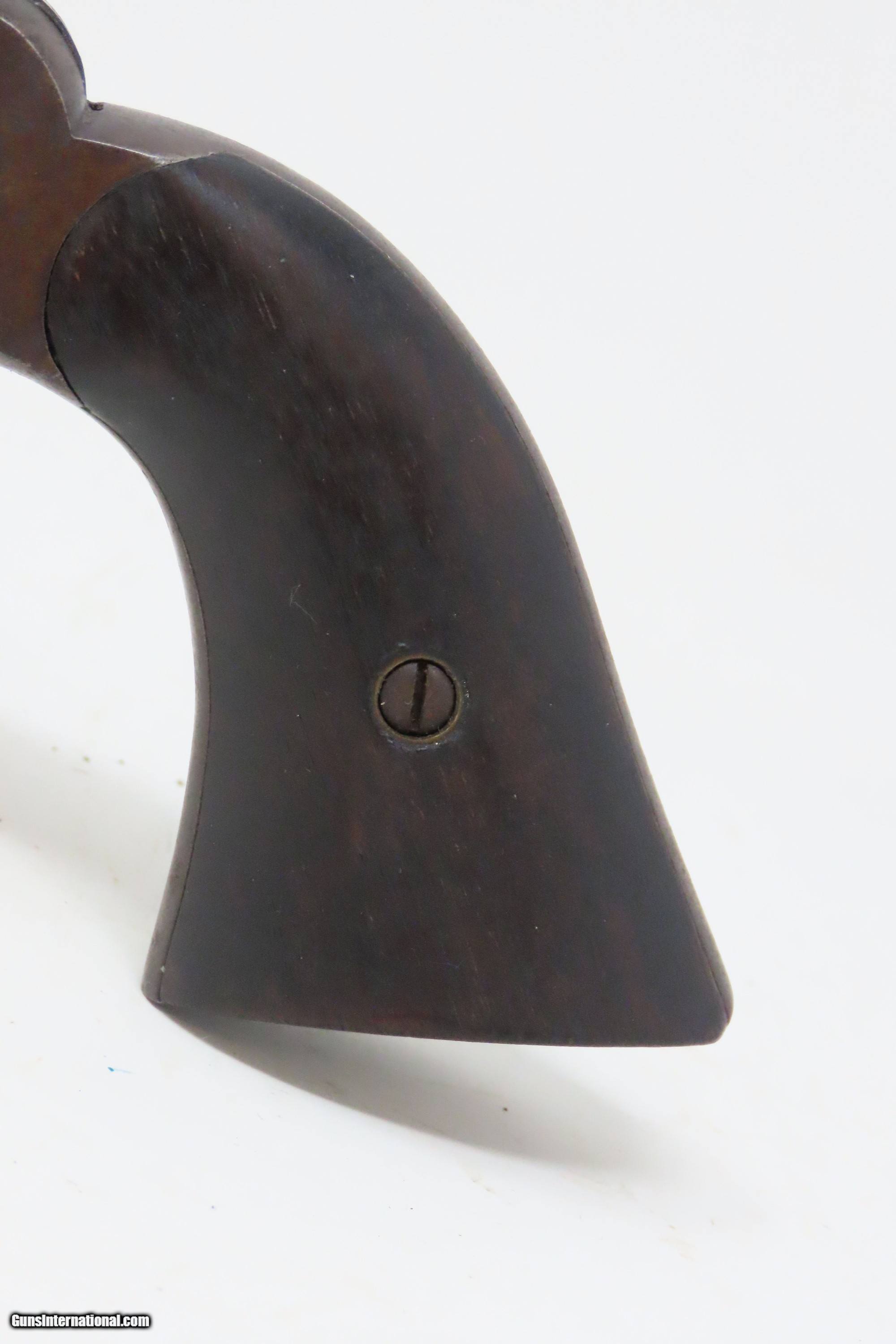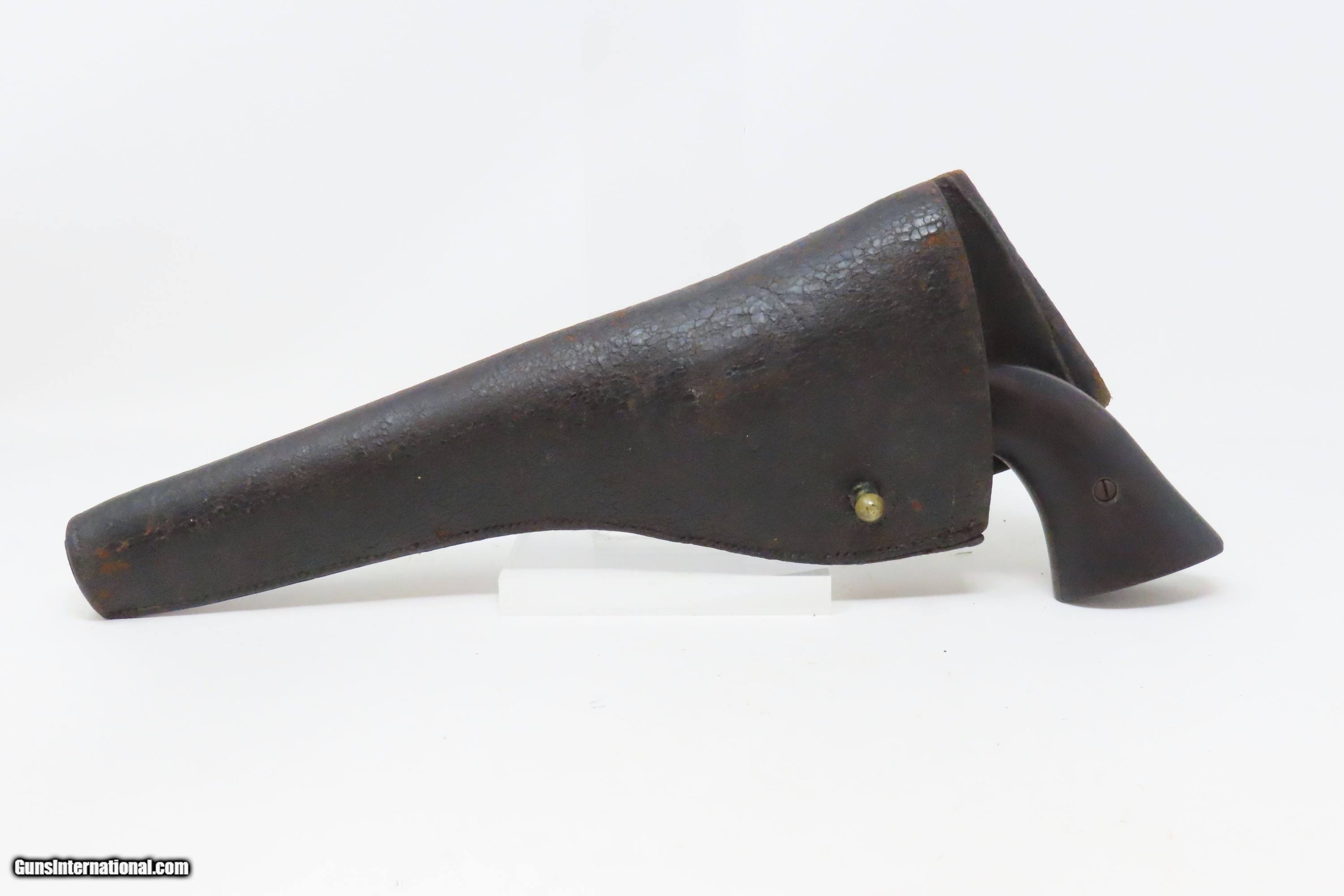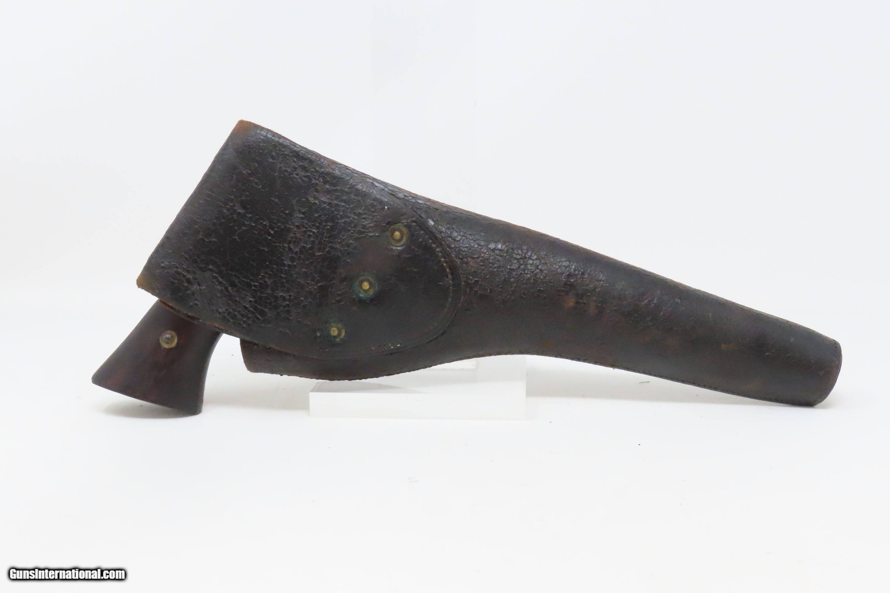 Description: c1860 ELI WHITNEY NAVY Revolver .36 CIVIL WAR New Haven Antique With Good Eagle, Shield, Lion Cylinder Scene! Here we present an antique Whitney Arms Company Navy Revolver, made circa 1860 in New Haven, Connecticut. Eli Whitney Sr. established his Whitneyville Armory in1798 and produced firearms (among other things) by contract for the young U.S. government. Just prior to this, in 1793, Whitney invented the mechanical cotton gin, which dramatically changed the economic landscape in the U.S., namely in the South. While his invention was a labor-saving device, making the processing of harvested cotton extremely efficient and requiring fewer laborers, his machine caused the market for cotton to explode and more laborers were needed to plant, grow and harvest the crop. This resulted in a corresponding boom in the Southern slave trade. Great fortunes were created, and the population of the South became such that one in three Southerners were slaves. All this provided the fuel that would become the raze that was the American Civil War. Despite its formal name involving “Navy”, the Whitney Arms Navy Revolver received the generic name from the Colt standard for .36 caliber revolvers evolving from the original Colt Model 1851 Navy. Eli Whitney died in 1825, and his son, Eli Whitney Jr., began running the family business in 1841. Whitney Jr. seized the opportunity in 1847 to manufacture 1,000 of Samuel Colt’s latest revolver, the Colt Walker revolver. Production of this revolver helped both parties immensely as it kept Colt in business, and it allowed Whitney Jr. to tool up and gain experience making revolvers. With the expiration of Colt’s patents in 1857, Whitney began production of percussion revolvers based on Colt’s patents, some of them very closely copied. The Whitney Navy Revolver came about when Fordyce Beals—later of Remington-Beal fame—came to work for the company. He was the primary designer, which was indeed why the Remington-Beals Navy and Army Revolvers came to look so much like the Whitney. The Whitney has the distinction of being one of the first successful solid framed revolvers. As their production began before the war in about 1857, both the Union and the Confederacy utilized them in the American Civil War. One very notable character known to have used the Whitney Navy was Confederate Cavalry General J.E.B. Stuart. Many of these were purchased by the U.S. government and by individual soldiers for use in the Civil War. The overall condition is very good. Original finish and patina. The cylinder scenes on these were lightly roll-marked and it is rare that any survive; this one is clear. The numbers match. The action is excellent. The bore is in good condition with sharp rifling. The grips are solid. This revolver comes in an original “US” military holster that is in good condition. Own the original! This is a legitimate antique and not a reproduction. Barrel is 7-5/8 inches. Caliber: .36 percussion Overall condition as seen in photos. Very Fast. Very Safe. FREE SHIPPING WORLDWIDE. Delivered directly to your door by express mail! Guaranteed AUTHENTIC & Includes CERTIFICATE OF AUTHENTICITY. ancestryguns $2500 #230648 SOLD Antique: Yes |