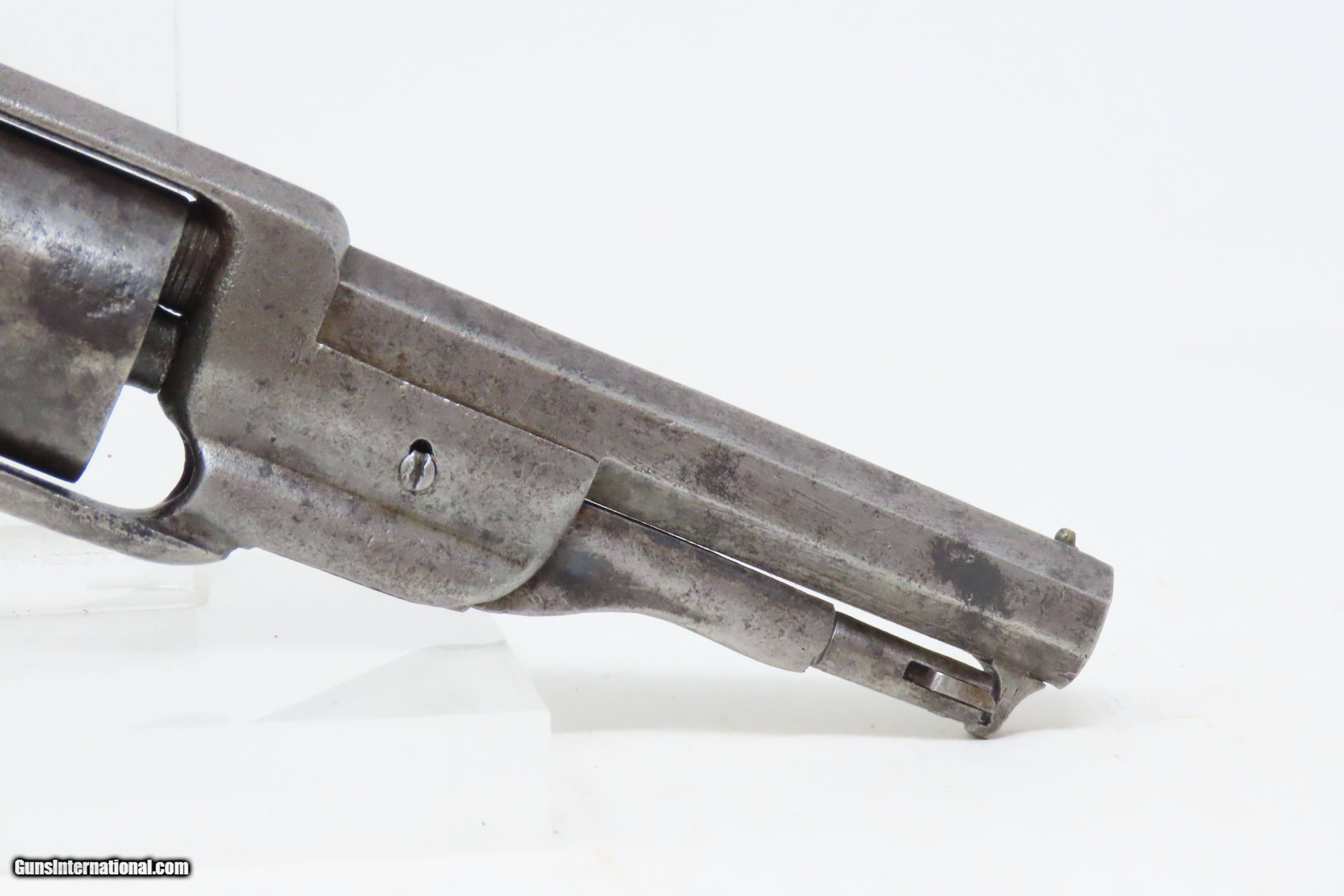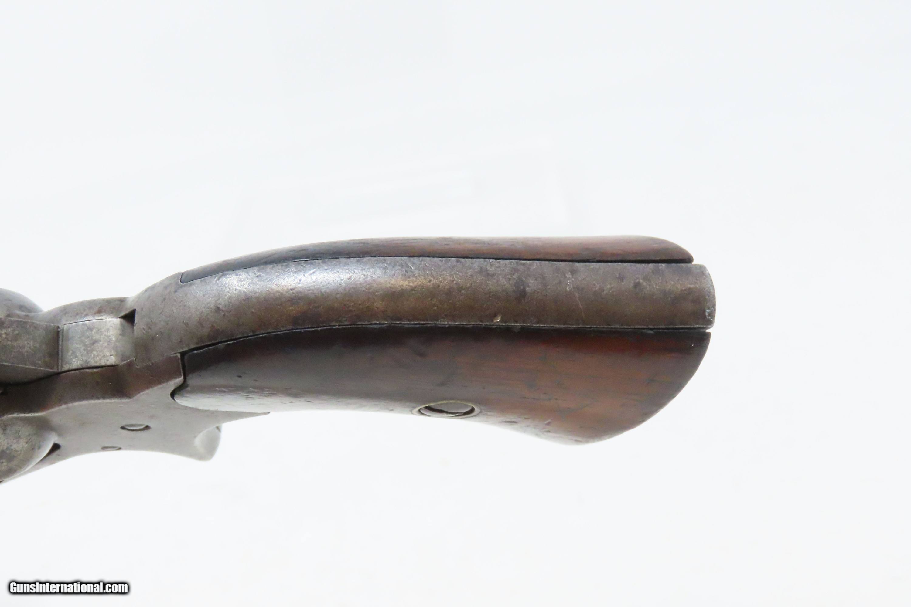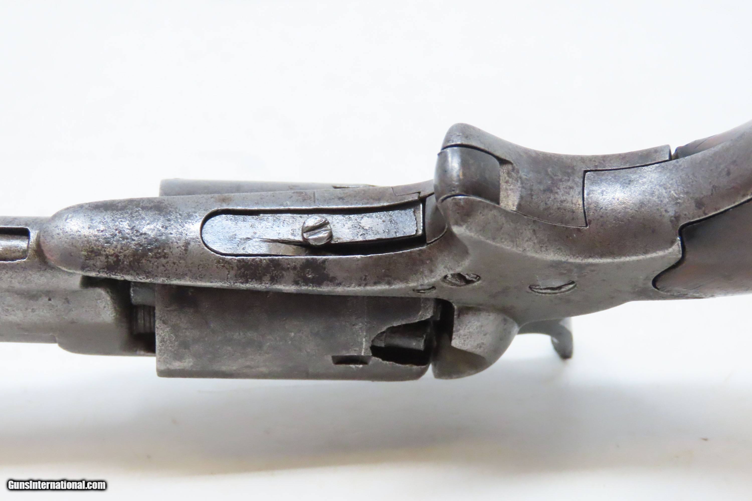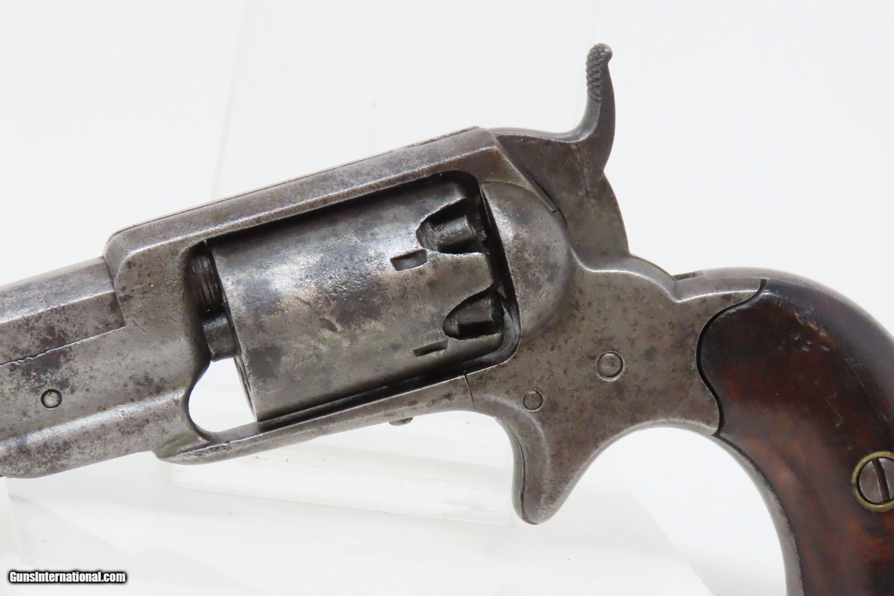 Description: CIVIL WAR Rare WHITNEY “New Model” POCKET Percussion Revolver 1 of < 2000 Spur Trigger Manufactured at the Whitneyville Armory Here we present an antique Whitney New Model Percussion Pocket Revolver, made circa 1860s in New Haven, Connecticut. Less than 2,000 of these revolvers are estimated to have been manufactured between 1860 and 1867. They are known to have been advertised at least as early as 1860 and likely designed specifically to compete with Colt's Model 1855 "Root" revolvers given it has many similarities. Given that, this is sometimes also known as the "Root Type Pocket Model." It has a small brass cone front sight and "E. WHITNEY/N. HAVEN" on top of the barrel and has, though very worn, a scroll engraved cylinder. Eli Whitney Jr., began running the family business in 1841. Whitney Jr. seized the opportunity in 1847 to manufacture 1,000 of Samuel Colt’s latest revolver the Colt Walker revolver. Production of this revolver helped both parties immensely as it kept Colt in business, and it allowed Whitney Jr. to tool up and gain experience making revolvers. With the expiration of Colt’s patents in 1857, Whitney began production of percussion revolvers based on Colt’s patents, some of them very closely copied. The overall condition is good. A gray patina has settled on the metal. Good bore. The action functions, but the cylinder does not properly lock up. Some remnants of the cylinder scene are present. Numbers match. Markings are legible. The right grip has a small toe repair. Here is a very desirable, Whitney New Model Pocket for your Civil War collection! Own the original! This is a legitimate antique and not a reproduction. Barrel is 3-1/2 inches. Caliber: .28 Percussion Overall condition as seen in photos. Very Fast. Very Safe. FREE SHIPPING WORLDWIDE. Delivered directly to your door by express mail! Guaranteed AUTHENTIC & Includes CERTIFICATE OF AUTHENTICITY. ancestryguns $1500 #240024 SOLD Antique: Yes |