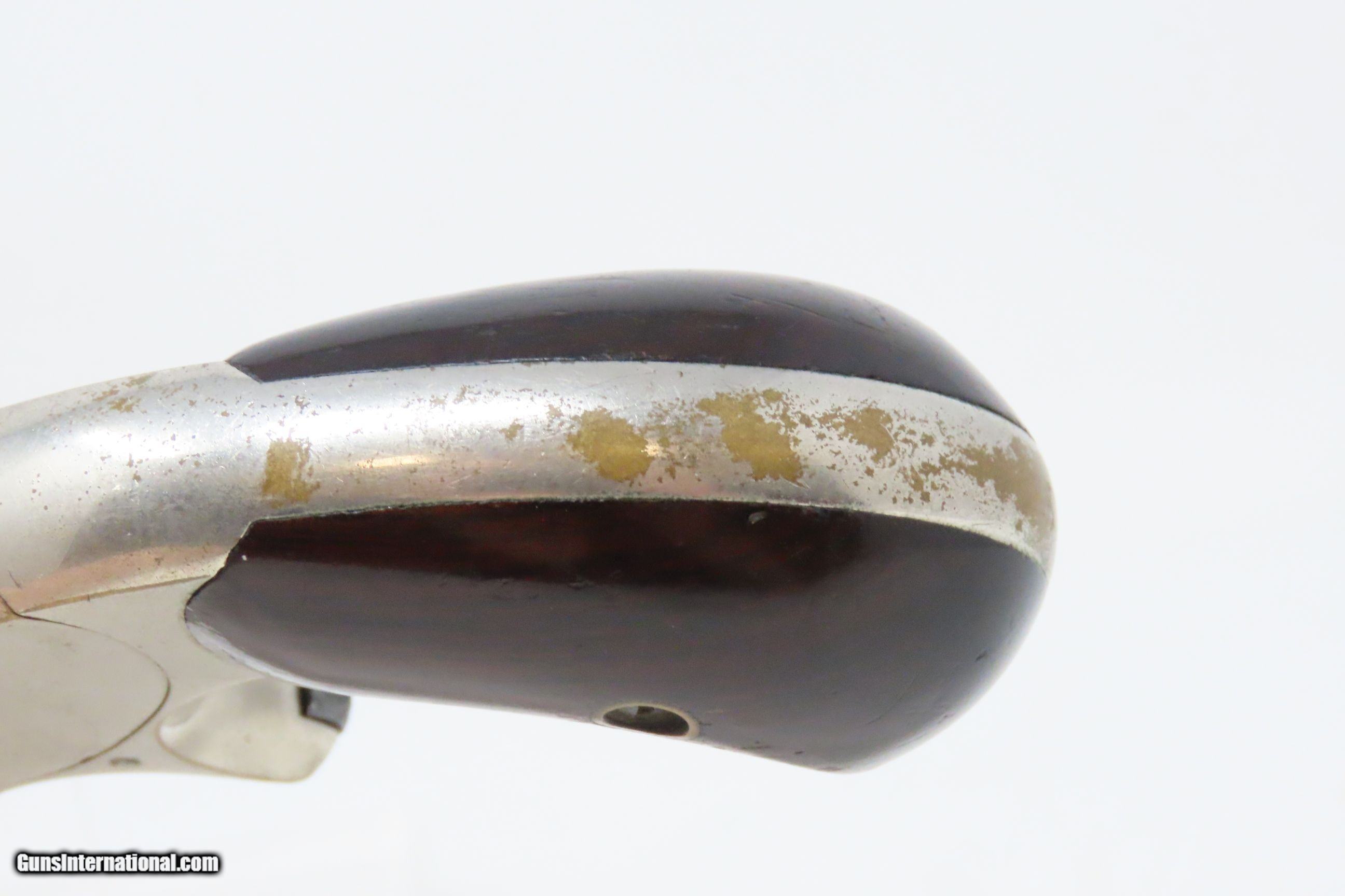 Description: SCARCE Antique WHITNEYVILLE ARMORY .32 RF No. 1 1/2 Revolver w/FLAP HOLSTER 1 of only 14,000 Manufactured circa the 1870s Here we present an antique Whitney Model No. 1-1/2 Revolver, made circa the 1870s in New Haven, Connecticut. This model is one of several breech loading pocket revolvers manufactured by the famous Whitneyville Armory circa 1871 to 1879. Around 14,000 of these 5-shot revolvers are estimated to have been manufactured Eli Whitney Jr.’s Whitneyville Armory in the 1870s. This example has the standard “Whitneyville” markings. Eli Whitney Sr. established his Whitneyville Armory in 1798 and produced firearms (among other things) by contract for the young U.S. government. Just prior to this, in 1793, Whitney invented the mechanical cotton gin, which dramatically changed the economic landscape in the U.S., namely in the South. While his invention was a labor-saving device, making the processing of harvested cotton extremely efficient and requiring fewer laborers, his machine caused the market for cotton to explode and more laborers were needed to plant, grow and harvest the crop. This resulted in a corresponding boom in the Southern slave trade. Great fortunes were created, and the population of the South became such that one in three Southerners were slaves. All this provided the fuel that would become the raze that was the American Civil War. Eli Whitney died in 1825, and his son, Eli Whitney Jr., began running the family business in 1841. Whitney Jr. seized the opportunity in 1847 to manufacture 1,000 of Samuel Colt’s latest revolver the Colt Walker revolver. Production of this revolver helped both parties immensely as it kept Colt in business and it allowed Whitney Jr. to tool up and gain experience making revolvers. With the expiration of Colt’s patents in 1857, Whitney began production of percussion revolvers based on Colt’s patents, some of them very closely copied. The overall condition is fine. Excellent action. Original nickel finish. The bore has dimmed. Both grips are in good shape with light handling. Sharp markings. A nice, tooled holster is included. Holster is missing the closure tie. Numbers match. Own the original! This is a legitimate antique and not a reproduction. Barrel is 2-1/2 inches. Caliber: .32 Rimfire Overall condition as seen in photos. Very Fast. Very Safe. FREE SHIPPING WORLDWIDE. Delivered directly to your door by express mail! Guaranteed AUTHENTIC & Includes CERTIFICATE OF AUTHENTICITY. ancestryguns $1200 #230770 SOLD Antique: Yes |