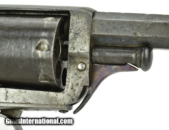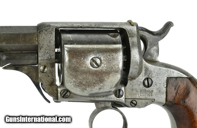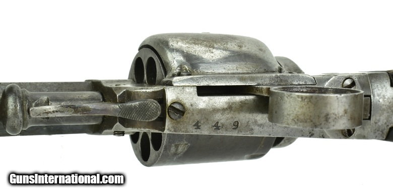Description: Whitney Beal’s “Walking Beam” Revolver. .31 Caliber. Serial number 449. Barrel length 4”. This is a 7-shot revolver. Top strap marked “E. Whitney, Whitneyville CT.” and on frame marked “Beal’s Patent Sept. 1854. The ring trigger advances the cylinder rotation and hammer must be manually cocked. Grips are good plus. No chips or cracks, just handling marks. Revolver has an even patina. SOLD Antique: Yes |