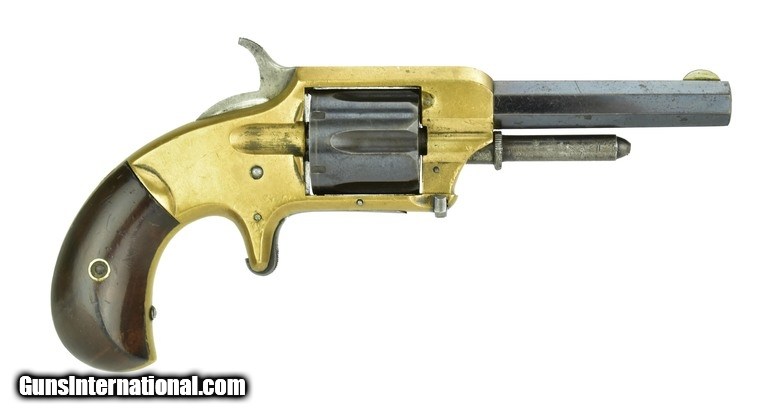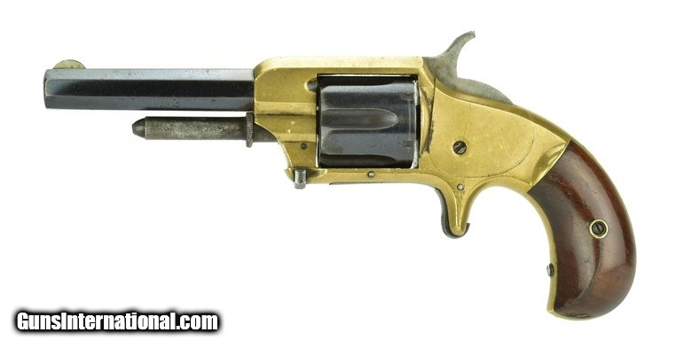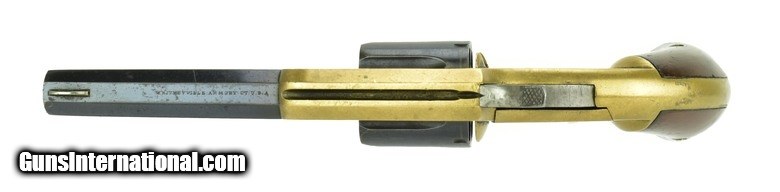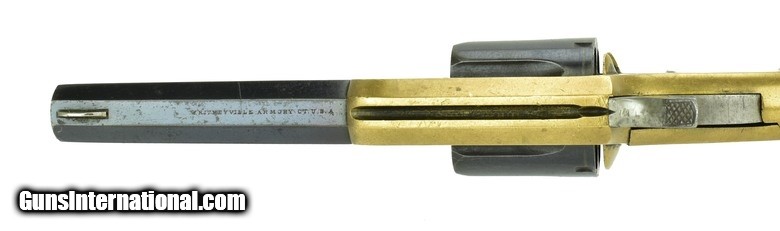 Description: Whitneyville Production .32 Rimfire Caliber Revolver. 5-Shot. Circa 1872. 3 ½” Full octagon barrel. Barrel and cylinder have approximately 85-90% blue. Barrel address is sharp and legible. Grips are excellent with 98% original varnish. No chips, no cracks. Action works perfectly. Brass frame has a fine even patina.