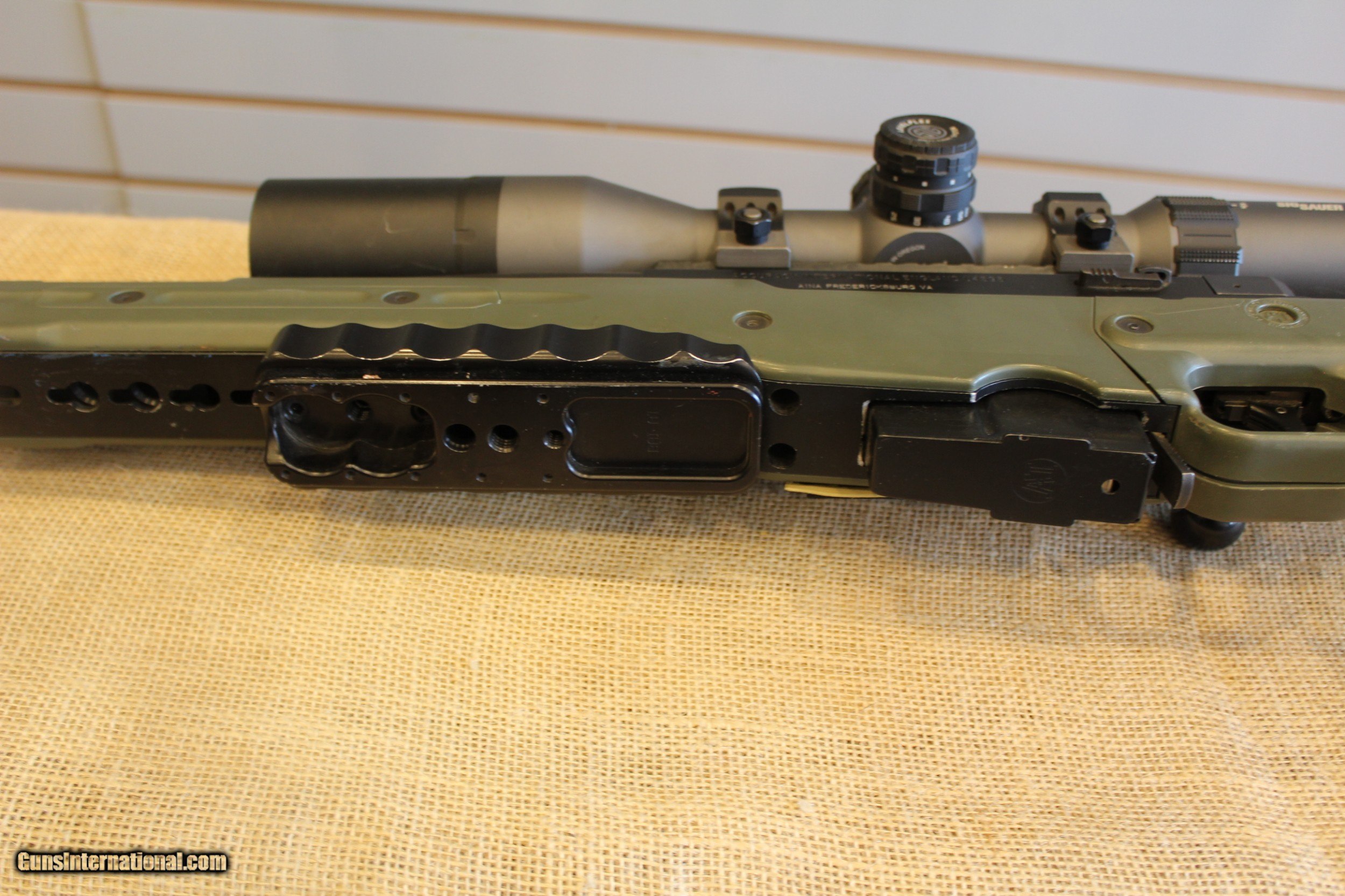 Description: Accuracy International AT with .308 WIN, 7.62 x 51 mm, and 6.5 Creedmoor barrels. Comes with ARCA adapter and picatinny spigot. Also has original plastic to convert back to thumbhole stock. $5000 with Sig Tango 6 4-24x50 MRAD or $3500 without optics. Muzzle devices not included. Call Bill at RW Outdoors with any questions at 406-842-5271. SOLD Rifle Caliber: 6.5 Creedmoor, .308 Winchester, 7.62x51mm NATO Manufacturer: Accuracy International Model: AT Serial Number: 2220 |