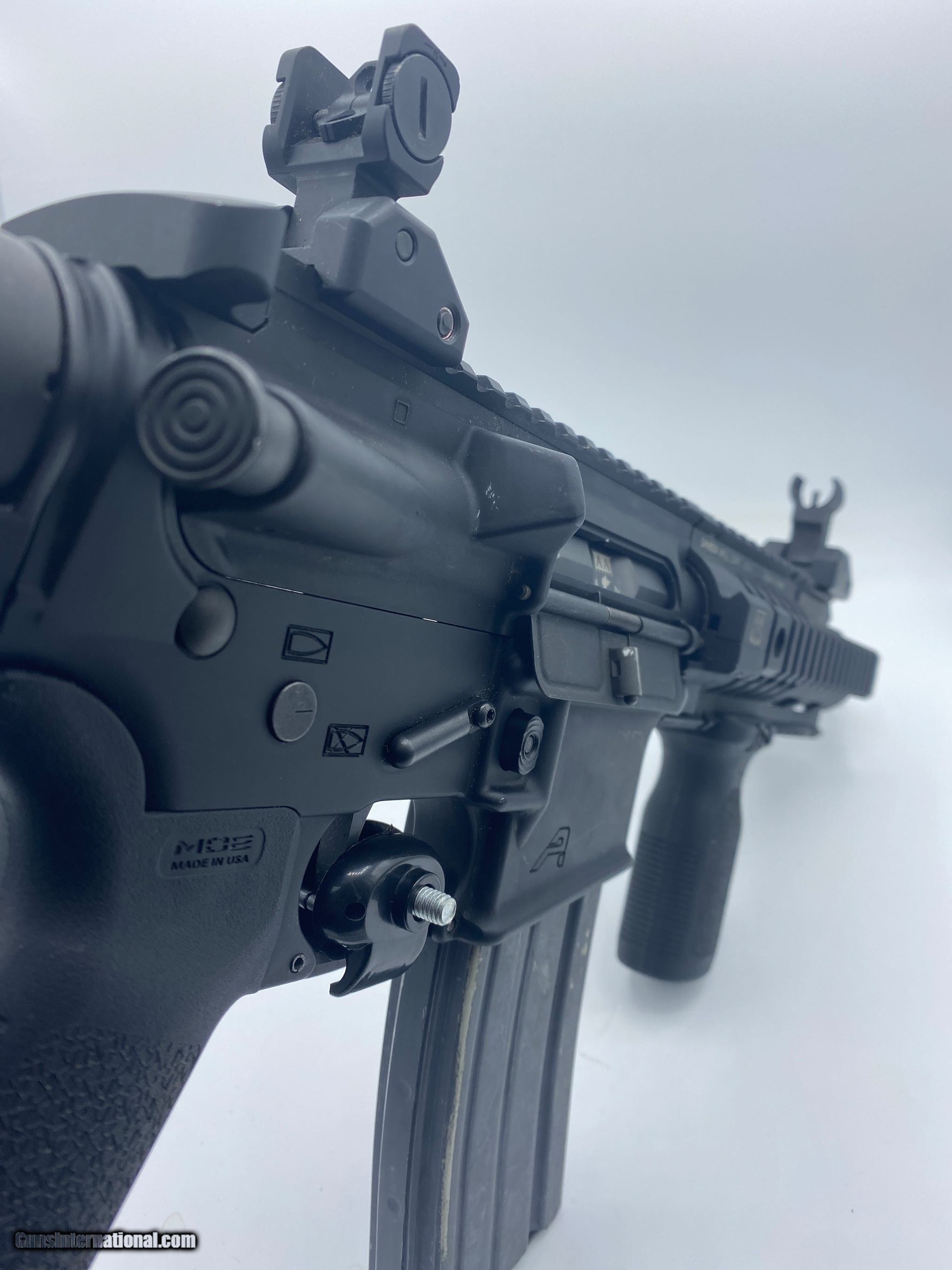 Description: Guns Listing ID: 1101814 This factory-made Aero Precision SBR just came in and is ready for the range! It features a 7.5” length barrel, Magpul accessories, and a factory warranty directly from Aero. Upper Features: • Upper: Standard AR15 Upper Receiver or M4E1 Enhanced Upper Receiver • Barrel: 7.5\" 5.56 NATO, Pistol Length, 1:7 Twist, 4150 CMV, QPQ corrosion resistant finish • Gas System: Pistol Length Gas System and low profile gas block • Bolt Carrier Group: M16 Cut, 8620 Steel, Phosphate Finish, Properly Staked, Carpenter 158 Bolt, HP and MPI Tested • Muzzle Device: Standard A2 Flash Hider Lower Features: • Lower: Gen 2 Lower Receiver with flared magwell and upper tension screw • Lower Parts Kit: Standard AR15 Lower Parts Kit • Buffer Kit: Standard Mil-Spec AR15/M4 Buffer Kit • Stock: Standard M4 Collapsable Stock • Grip: Standard A2 Pistol Grip Accessories: Magpul Gen 2 Front and Rear Flip-up Sights Aero Enhanced Upper w/ 7” Keymod Handguard Magpul RVG Front Grip One 30rd Magpul Pmag Innovative Arms GRUNT LMM J3 SOLD Manufacturer: ADAMS ARMS Model: x15 Caliber Info: .223 REM/5.56 NATO Condition: Used - Non-Certified Barrels: 7 BARREL Finish: BLACK |