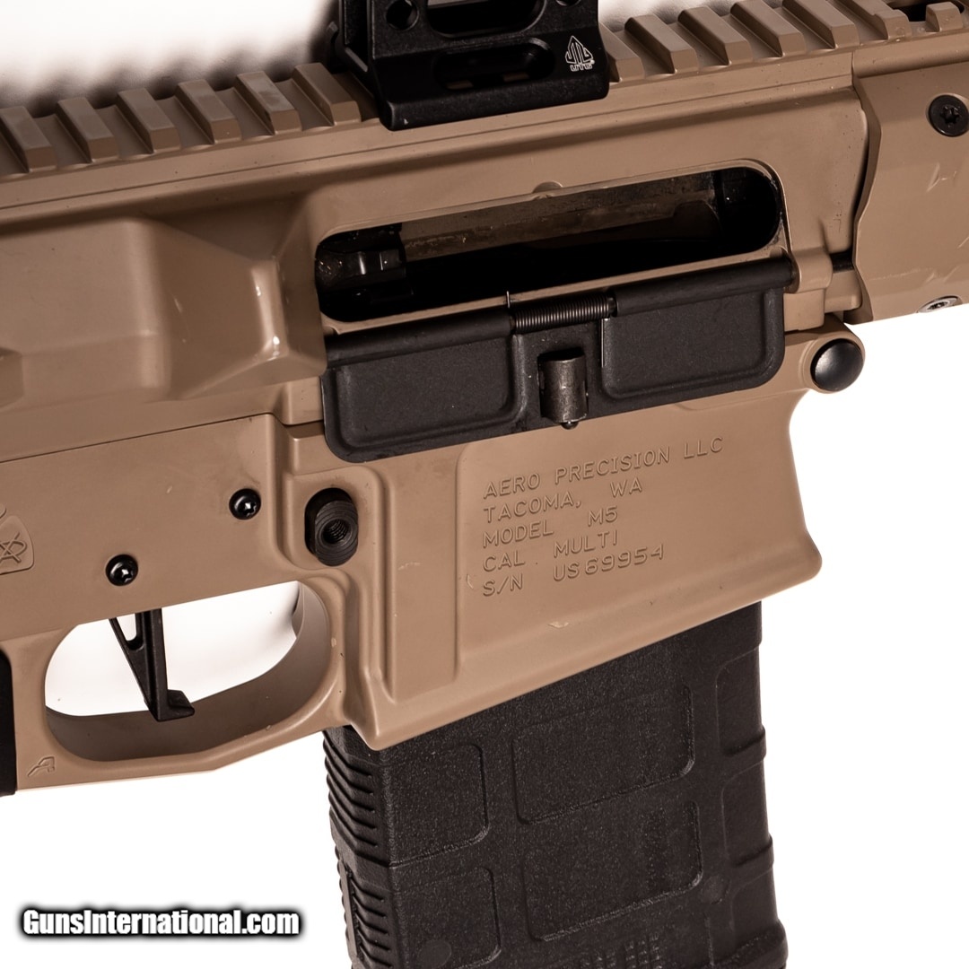 Description: Guns Listing ID: 650711 This Aero Precision M5 is like an AR-pattern rifle, only with more power, more precision, and more punch. The .308/7.69 load can take down larger targets at greater distances than its baby brother, the iconic .223/5.56. This M5 features a Nikon tactical red dot and includes one 20-round magazine. Get the best bang for your buck when you get a Certified Used Firearm . When you see the Certified Used stamp on any of our firearms, you can be confident that you’re getting exactly what you want – a gun only in very good to excellent condition and held to the highest quality standard. All Certified Used Guns come with a ‘no questions asked’ return policy . PLUS, ALL CERTIFIED USED GUNS SHIP FREE! SOLD Manufacturer: AERO PRECISION LLC Model: M5 Caliber Info: .308 WIN Condition: Used - Certified Barrels: 14.7 barrel Finish: FDE/BLACK |