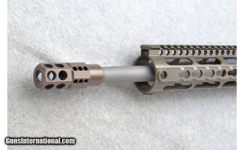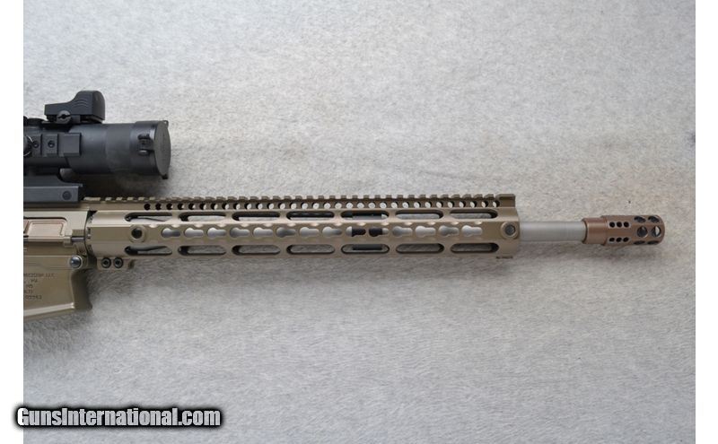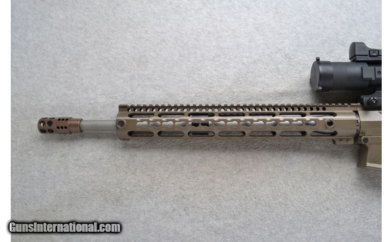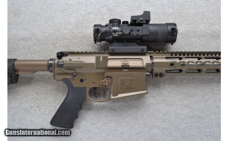 Description: This Aero Precision Model M5 is a right hand semi-auto tactical rifle in .308 Win. Cal. It has an 18 inch barrel plus a muzzle break. 1/10 twist. It is outfitted with a Burris AR-536 5X prism scope and Burris Fastfire II sight. It has a Magpul telescoping / adjustable butt stock and a Hogue black rubber full pistol grip. The forearm is a M-LOK FDE metal alloy. .308 Winchester SOLD Chambers: Semi-Auto 20 round magazine. Metal Condition: Excellent. Bore Condition: Excellent. Barrels: 18 inch 416R SS HP MP 09/15 - 1:10 twist - plus muzzle break. Stock Dimensions: LOP 15 1/4 inches full open. Fore End: M-LOK FDE metal alloy with top Picatinny rail. Butt Pad: Black rubber. Weight: 9 lb. 8 oz. Sights: Burris AR-5365X Prism with a Burris Fastfire II sight on top. Item Location: Richfield, WI |