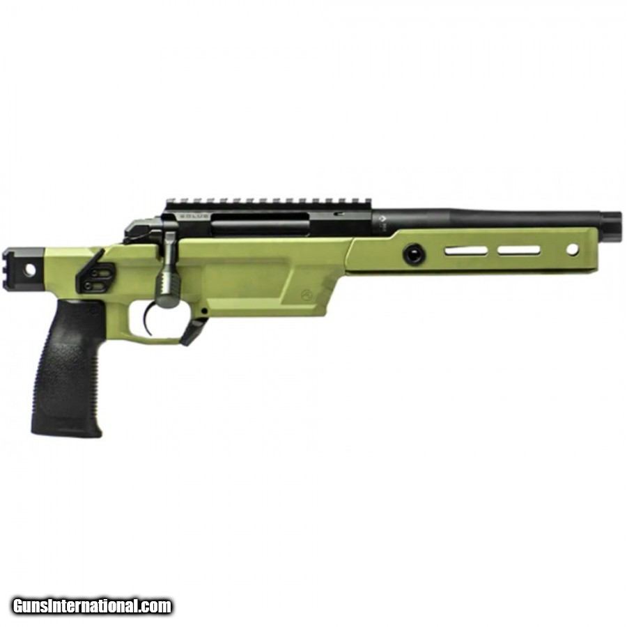 Description: Guns Listing ID: 585933 The SOLUS Short Action series is built on the Remington 700 Short Action footprint and features a 3-lug bolt head, dual ejectors and a 60-degree bolt throw with a \"cock on lift‚ bolt design. The receiver features a integral 20 MOA top rail for quick and easy optic mounting right out of the box. Each rifle carries a sub-MOA precision guarantee. This model comes in a pistol configuration and is chambered in .300 AAC Blackout with a two-tone black receiver finish and custom \"Bazooka Green\" chassis color pattern. The receiver assembly is installed on Aero Precision‚s SOLUS Competition Chassis. The chassis features a matching pistol configuration and comes with a rear Picatinny stock/brace mount that includes an integrated QD sling mount. The receiver has a 8.3-inch threaded barrel and comes with one 10-round Magpul AICS magazine. SOLD Manufacturer: AERO PRECISION Model: SOLUS SA Caliber Info: .300 AAC BLACKOUT Condition: new Barrels: 8.3" BARREL Action: BOLT ACTION Finish: two-tone Weight: 5.5 LBS |