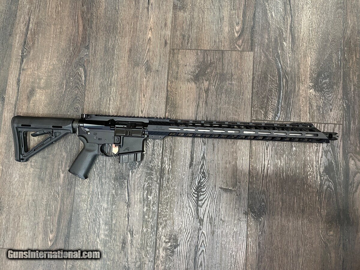 Description: Guns Listing ID: 900407 This custom built aero precision is chambered in 224VALKYRIE. The lower is an aero precision X-15. We have a standard lpk but we have upgraded the trigger to a single stage flat faced drop in, with anti walk pins. The grip is a magpul moe plus. And stock is also magpul moe. The upper is an aero precision m4e1 with a stag arms stainless steel fluted barrelWith a strike industry muzzle device. The handguard is a grendel hunter free float mlok handguard that runs the length of the barrel. The charging handle is an ambi oversized by rainier arms. This gun will come with 1 magazine. Overall the gun is in great shape and should be a shooter. SOLD Manufacturer: AERO PRECISION Model: X15 Custom Build Caliber Info: .224 VAL Condition: Used - Non-Certified Barrels: 18 BARREL Finish: BLACK AND STAINLESS |