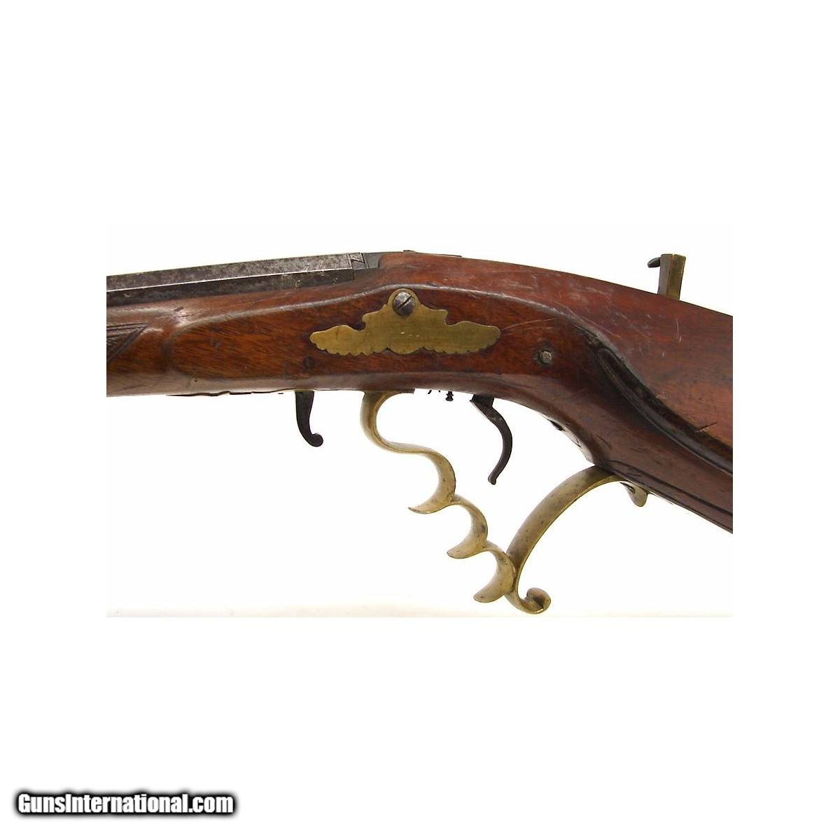 Description: "Early Air Rifle with set trigger. Rare! Bellows operated with spanner wrench aperture on side of stock. Circa 1700. Has very good amount of fading original blue on barrel. Very good overall condition. SOLD Antique: Yes |
