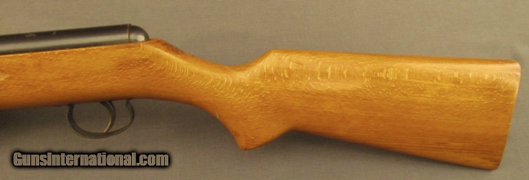 Description: S# 272152, .177 cal pellet, 10 1/4 inch barrel, bright excellent bore. This air rifle was built in 1968 at CZ and it remains in good condition with a strong spring and shoots well. Metal surfaces show light freckling and retain 75% blue. Stock shows a few dings and has a Dan Wesson sticker on right side. A fine airgun for practice or plinking. Antique SOLD Manufacturer: CZ Model: Slavia 620 Serial Number: Z72152 Caliber Info: .177 Gauge Info: .177 |
