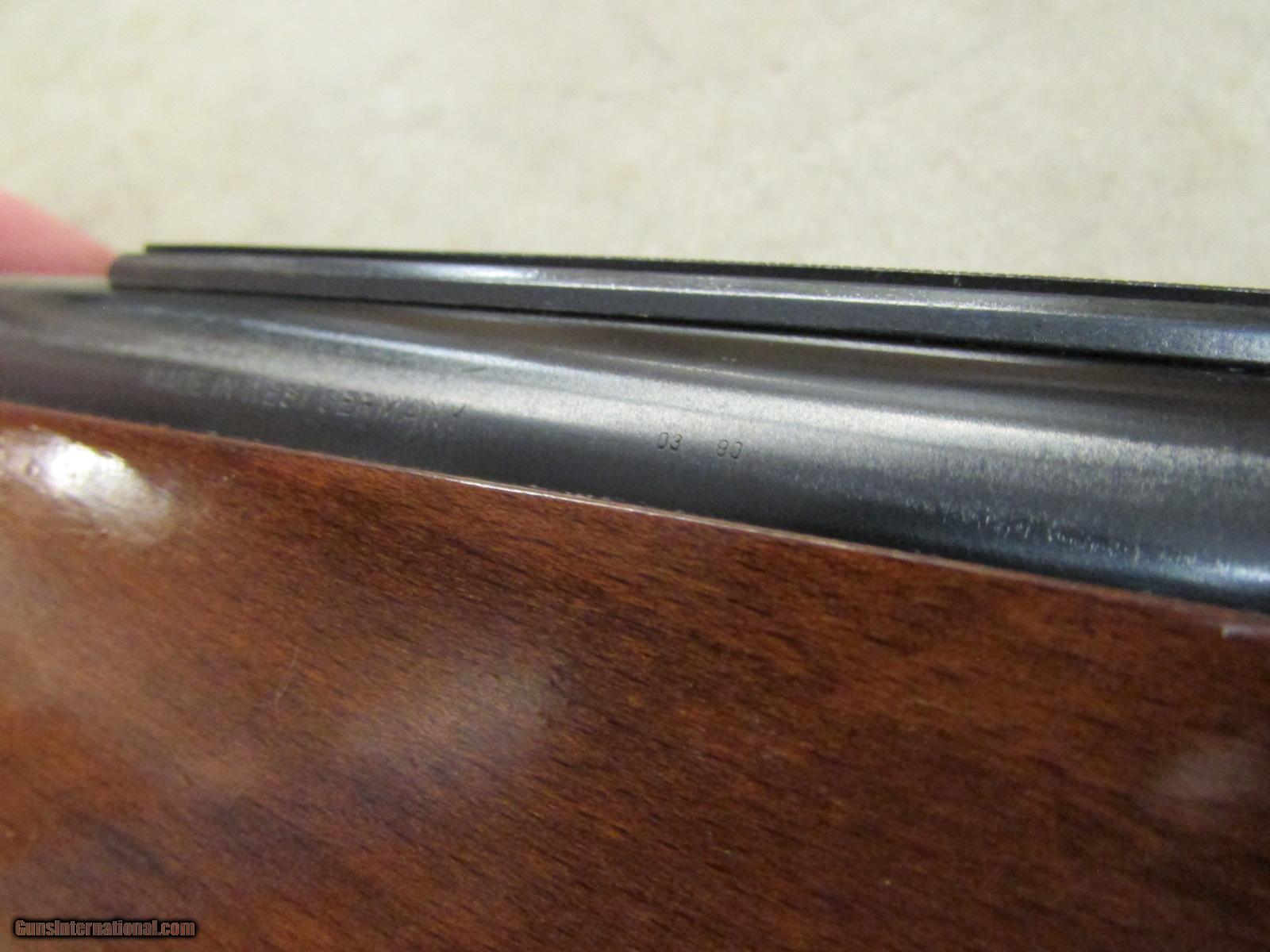 Description: This air rifle was taken on trade through our retail store. It is great condition overall and has been test fired to ensure it still functions. Bluing is excellent and there are very few marks on the wood stock. There is some damage to the rubber "pull rod cover" but this does not affect the rifles function. There does also appears to be a coat of polyurethane or lacquer that was applied to the stock at some point. Pictures are of exactly what you will receive! Manufacturer: RWS (Made in Germany) Model: 48 Action Type: Side-Cock Caliber: .177 Advertised Max Velocity: 1100 FPS Weight: 8.5 lbs Overall Length: 42.0" Barrel Length: 17.0" Grooved 11mm Receiver for Rings or Bases THIS RIFLE HAS BEEN FUNCTION TESTED, HOWEVER IT HAS NOT BEEN CHRONOGRAPHED AND WE CANNOT GUARANTEE THAT YOU WILL ACHIEVE ADVERTISED VELOCITIES. When RWS first introduced the Model 48, its rapidly became a well known classic among knowledgeable air gunners. Pushing .177 pellets up too 1100 FPS, this rifle reaches .22 rim-fire velocities! This tremendous power is generated by the use of a very robust spring piston power plant cocked by a side lever action. The action is mounted into an extended beech stock to reduce felt recoil and to aid in achieving accuracy potential. Not designed for the faint hearted, this is one impressive air arm, both in performance and presence. It fulfills its purpose as a potent, full-size sporting airgun suitable for either pest control or field target shooting, yet it does so with both balance and grace. The substantial one-piece stock allows for comfortable ambidextrous offhand shooting and adds to the overall sensation that the Model 48 is a force to be reckoned with. The rifle is fitted with a finely rifled, fixed barrel system loaded via sliding breech opening. Its full accuracy potential can be realized by the use of a quality airgun scope mounted to the scope rail. Shipping to the lower 48 only, Shipping $30.00 PLEASE BE AWARE OF LOCAL AND STATE LAWS WHERE YOU LIVE! SOLD |