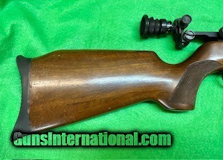 Description: West German, break action match grade precision target air rifle 18" barrel Lever takedown system Checkered walnut sports stock,with Monte Carlo , and cheek piece 100% bluing and stock condition High quality diopter micrometer adjustable peep Like new condition $859 + Shipping SOLD |