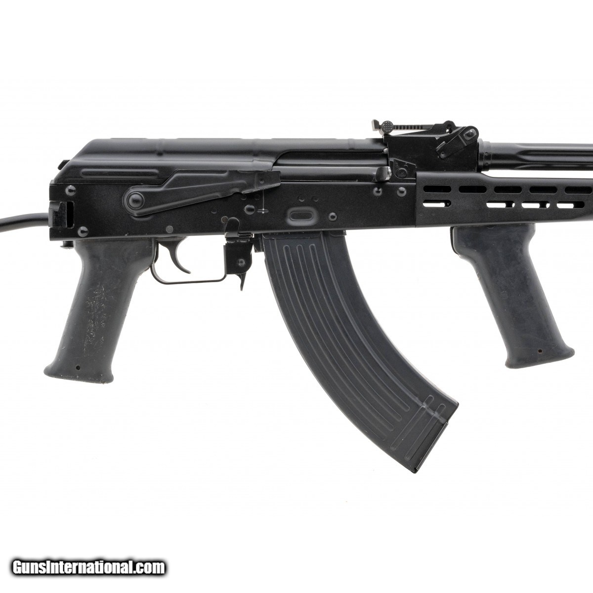 SN: EF0037H. Rare Hungarian made AK originally shipped from Hungary as a pistol and converted to original configuration by Tennessee Guns International. Very few of conversions were completed. Has a folding stock, Tapco trigger and Pin and welded AMD-65 muzzle device on a Hungarian made barrel. Overall excellent condition.