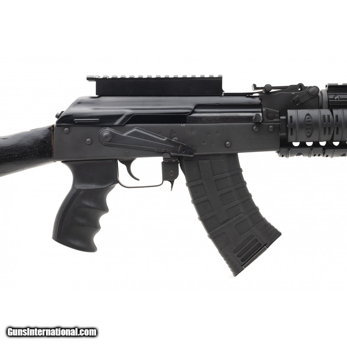 Description: " Romanian AK with quad rail and picatinny dust cover. The buttstock has been painted black. Very good condition. SOLD |