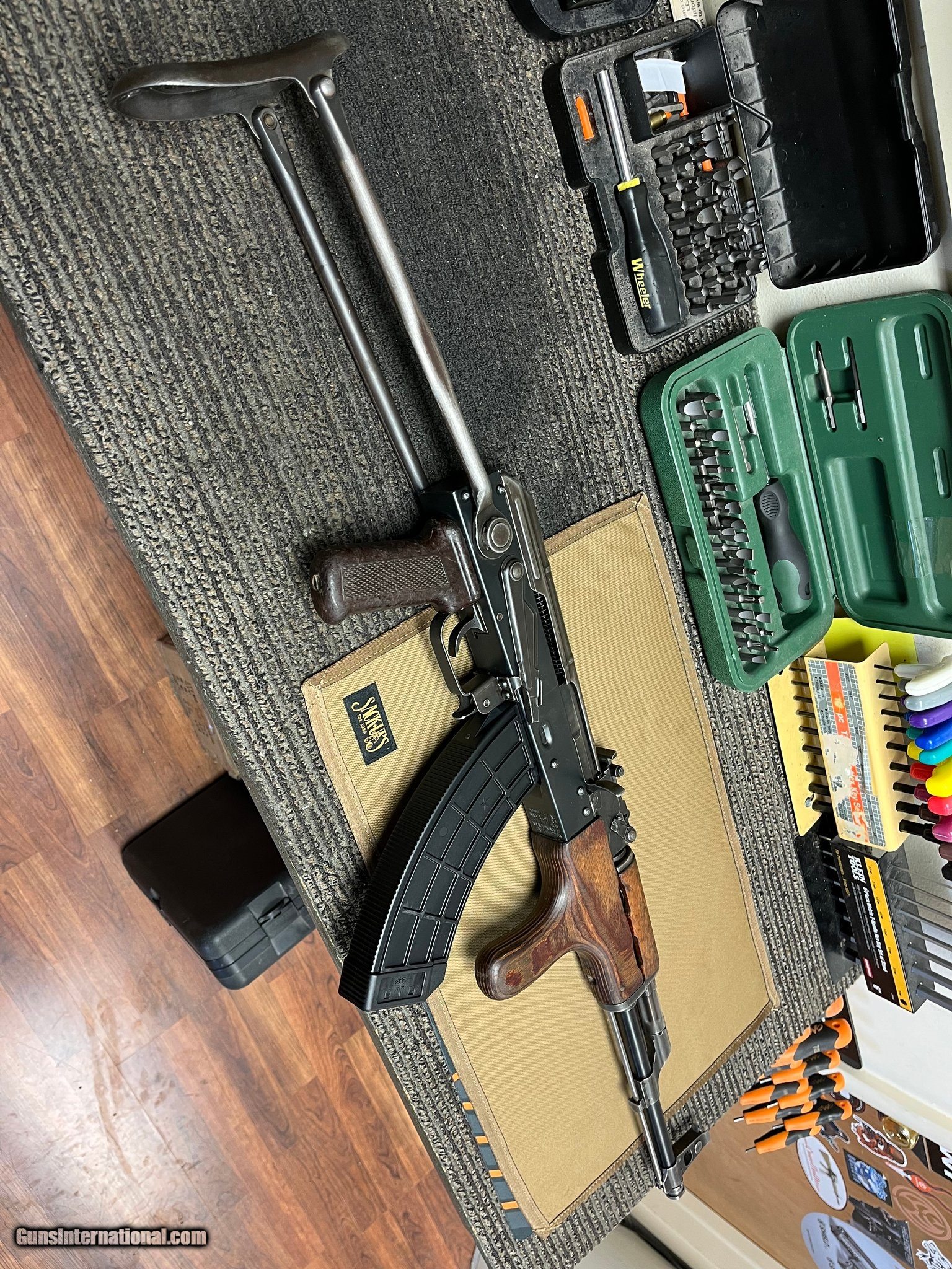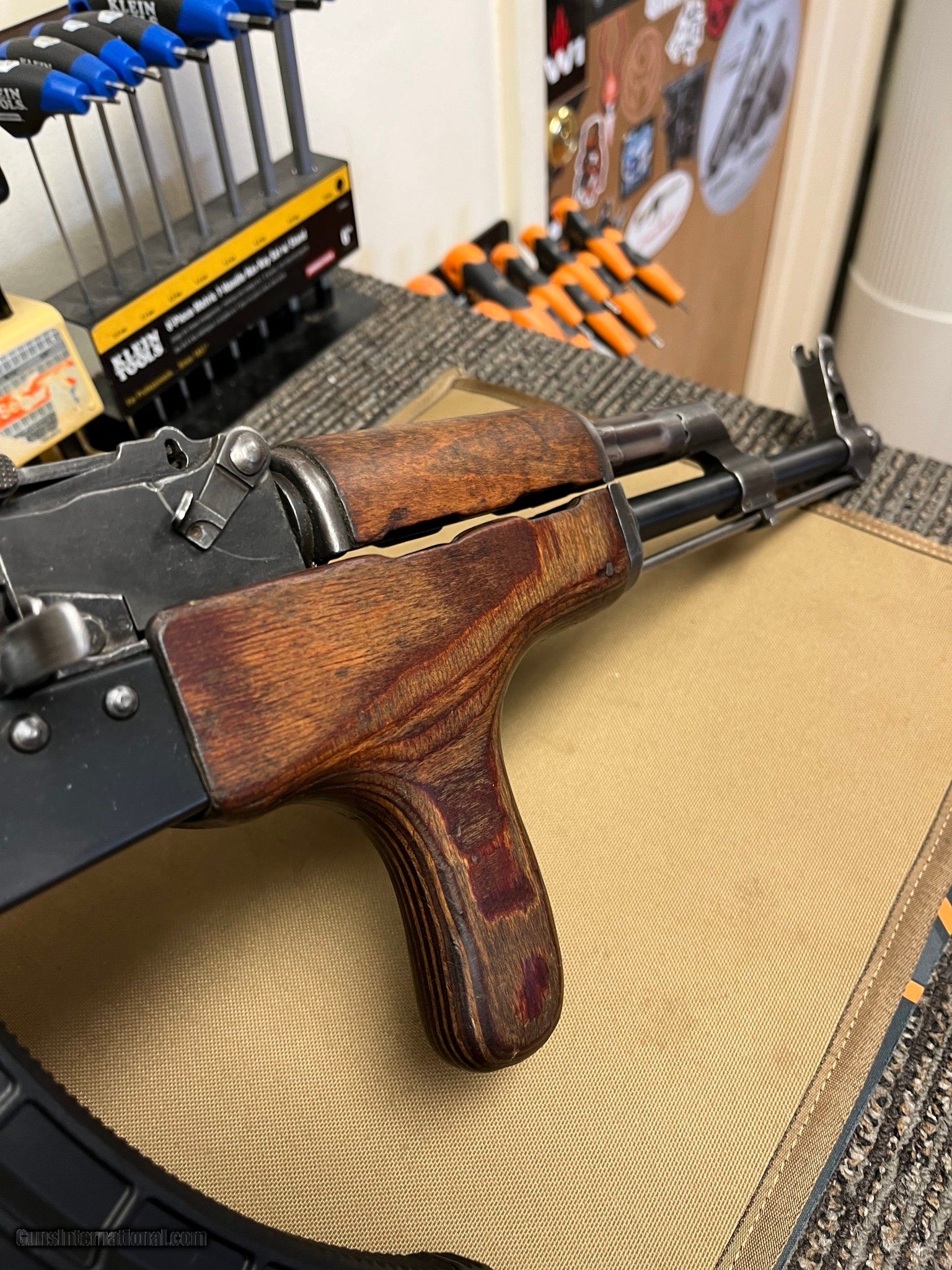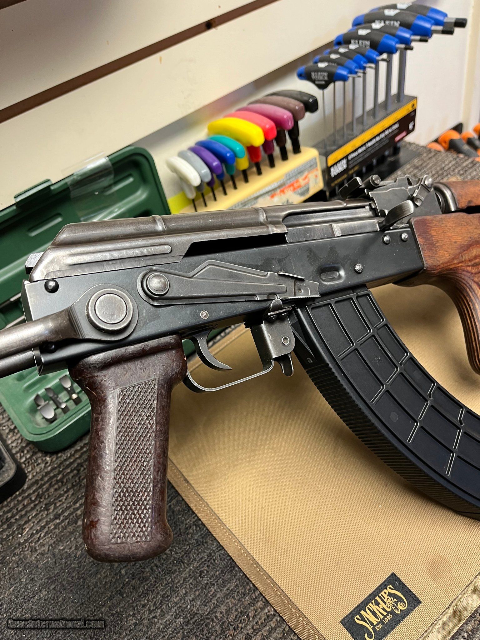 Description: Guns Listing ID: 1357024 Romanian underfolder 7.62x39 AK. 63/65. Morrisey receiver. Has the proper number of US parts. Nice vintage AK SOLD Manufacturer: AK-47 DESIGN CARBINES, RIFLES, & PISTOLS Model: Morrisey Romanian 63/65 Caliber Info: 7.62X39MM Condition: Used - Non-Certified Barrels: 18 BARREL Finish: BLACK /W WOOD STOCK |